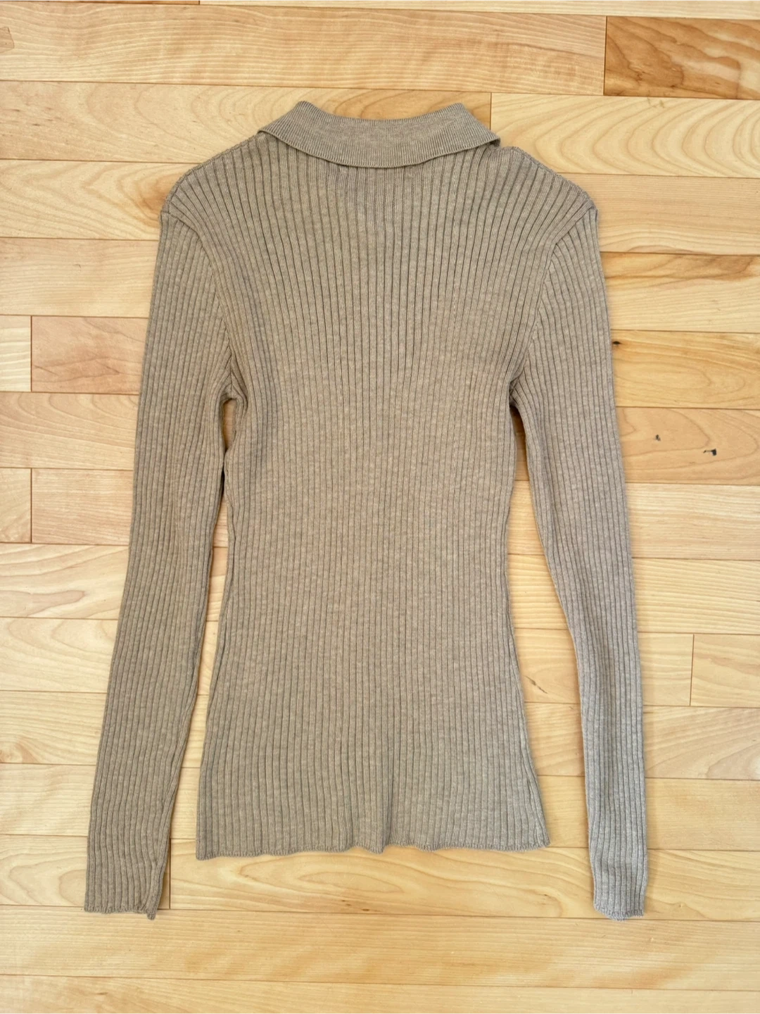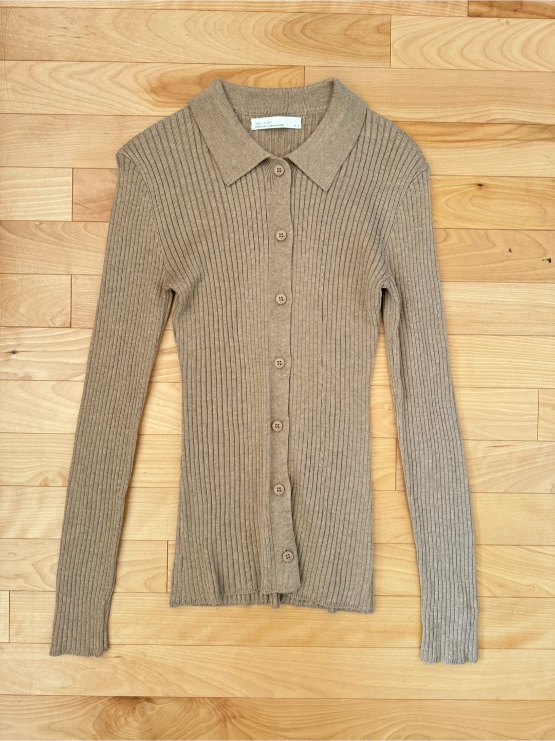 Selling my OAK+FORT light brown ribbed button-down top for $20