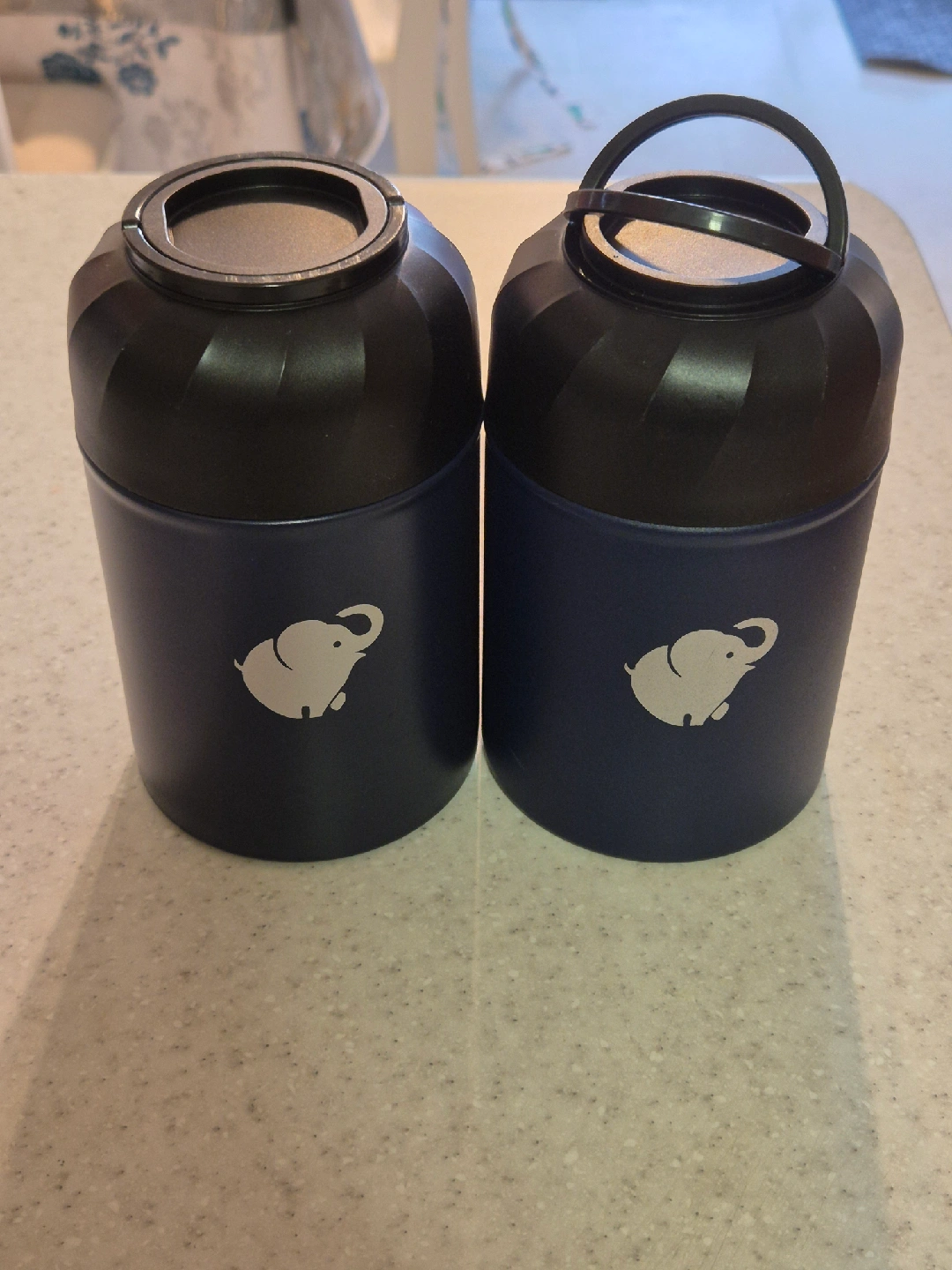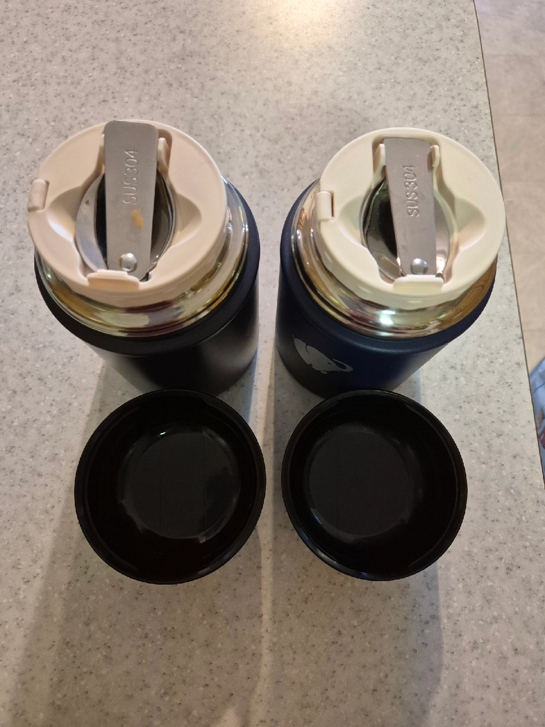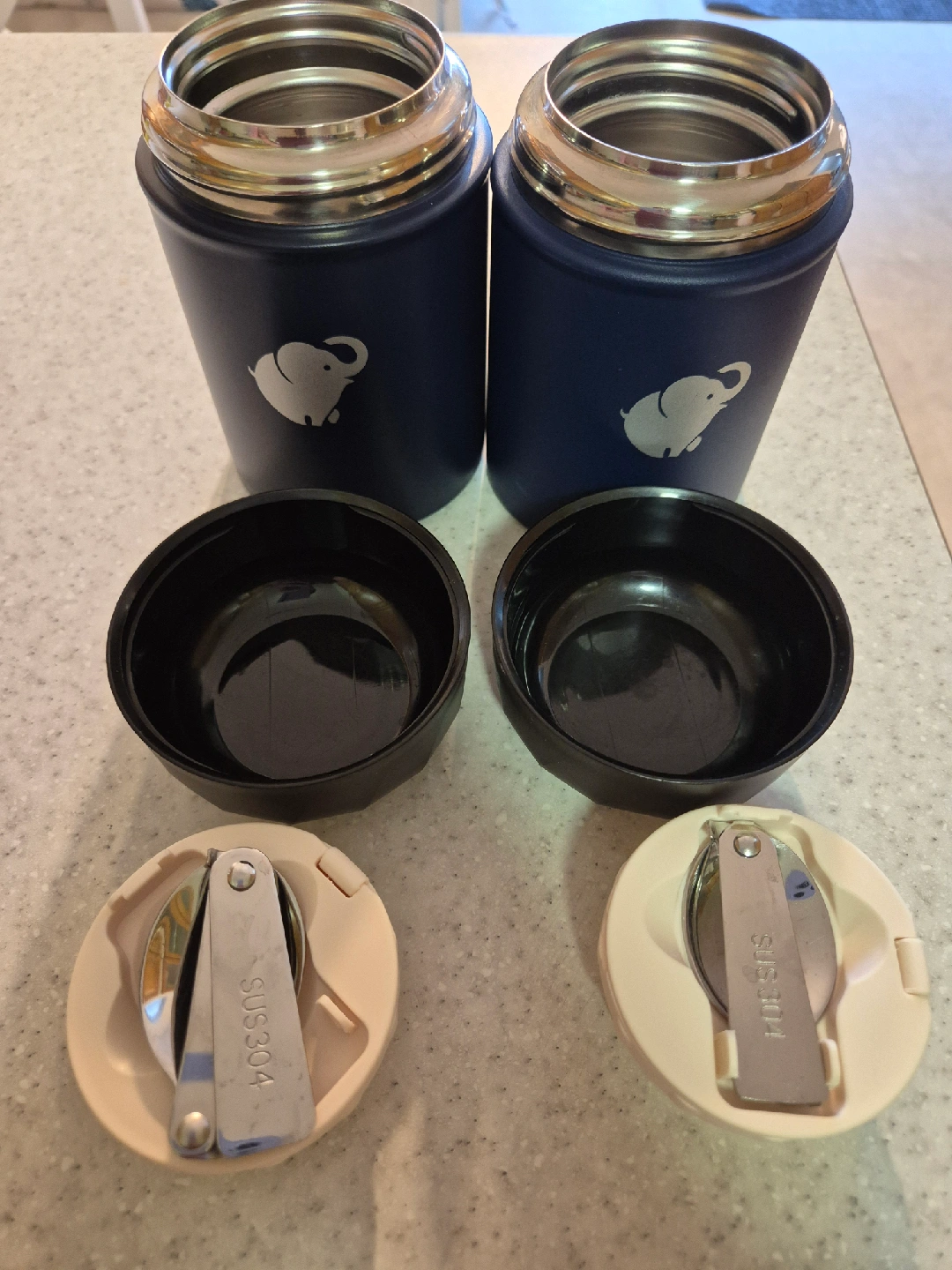 6030 CAD for 2 Keep Food Hot & Cold for Long Time insulated food containers. Comes with a spoon, 2 mall bowls that fit inside the lid. Great for school lunches or picnics!