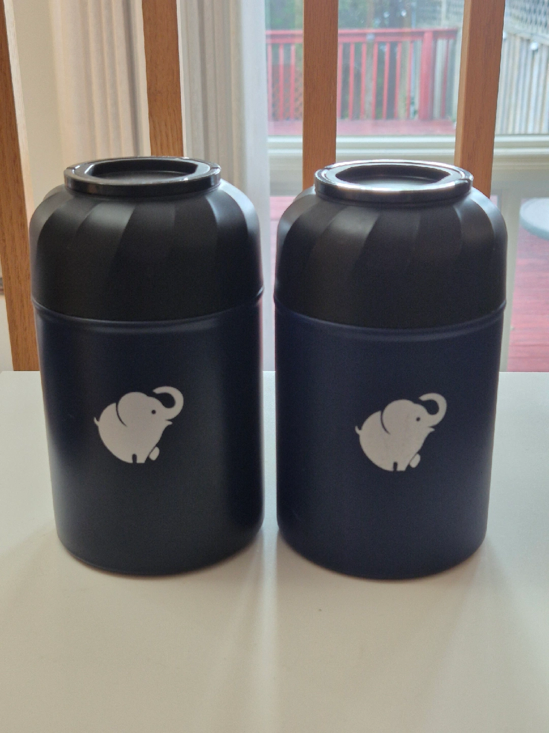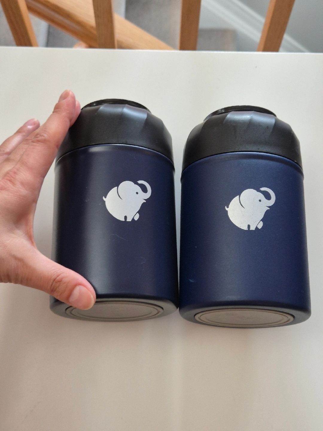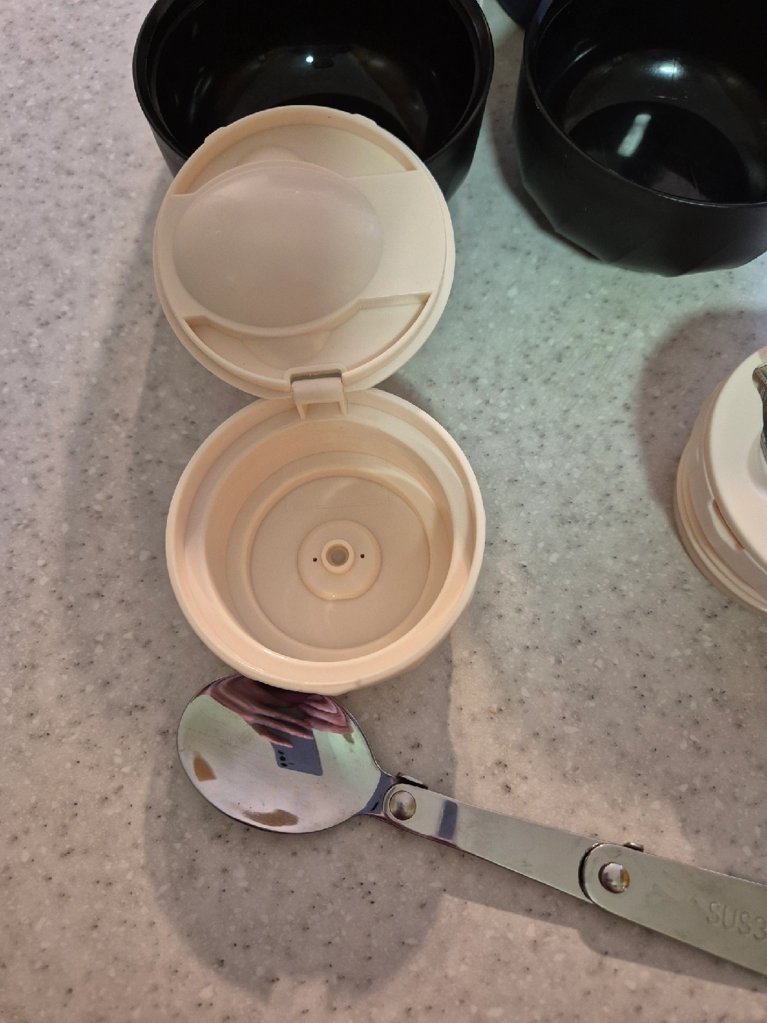 6030 CAD for 2 Keep Food Hot & Cold for Long Time insulated food containers. Comes with a spoon, 2 mall bowls that fit inside the lid. Great for school lunches or picnics!