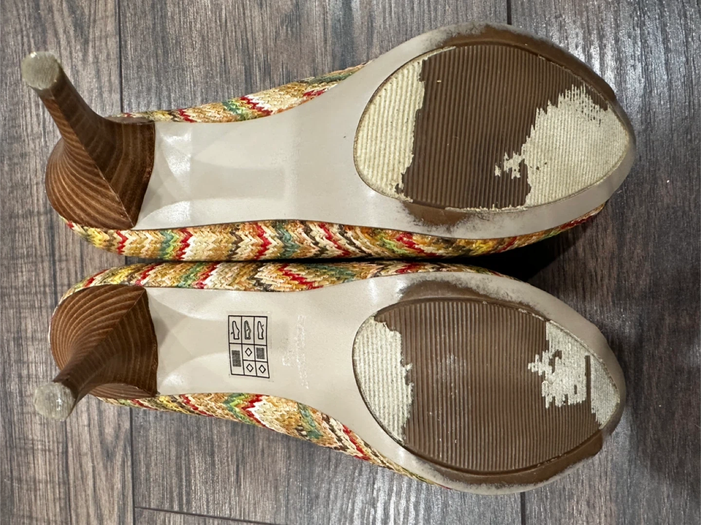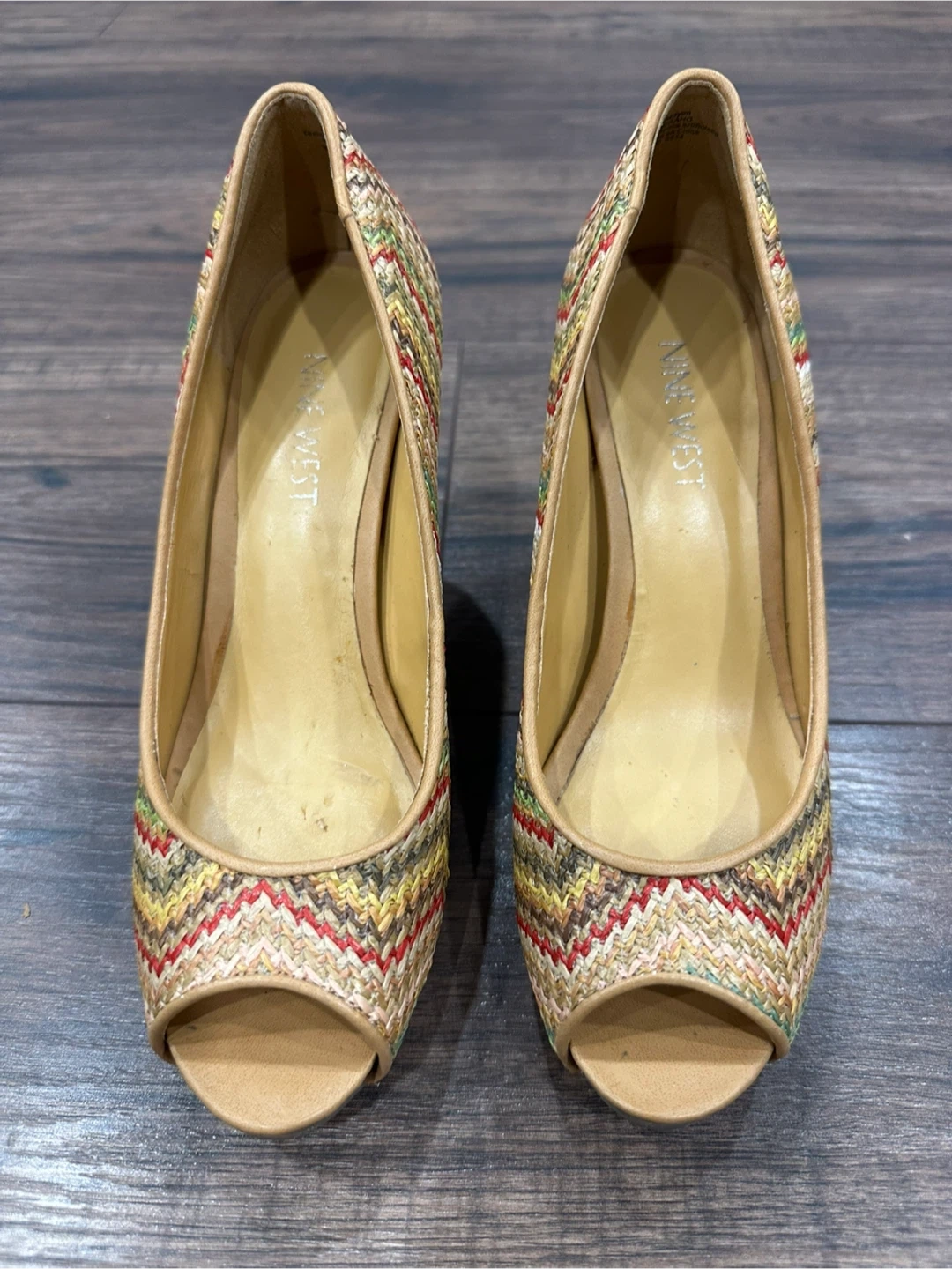 These Nine West heels are a fun and colourful addition to any wardrobe! They are a size 5 and feature a peep toe design. Wear just couple times , the shoe is in good condition and ready for a new home