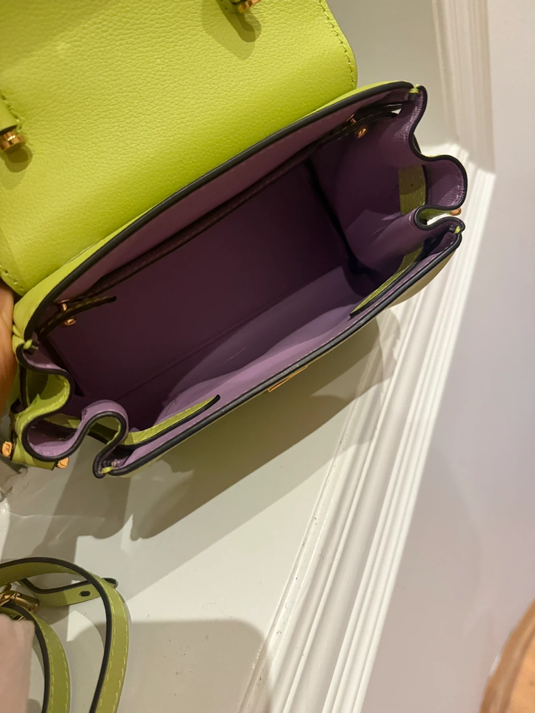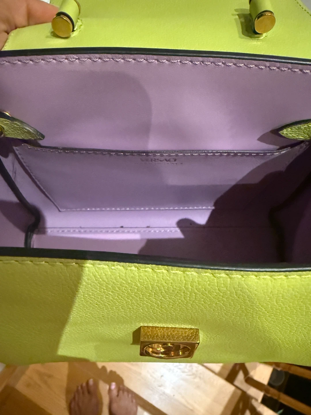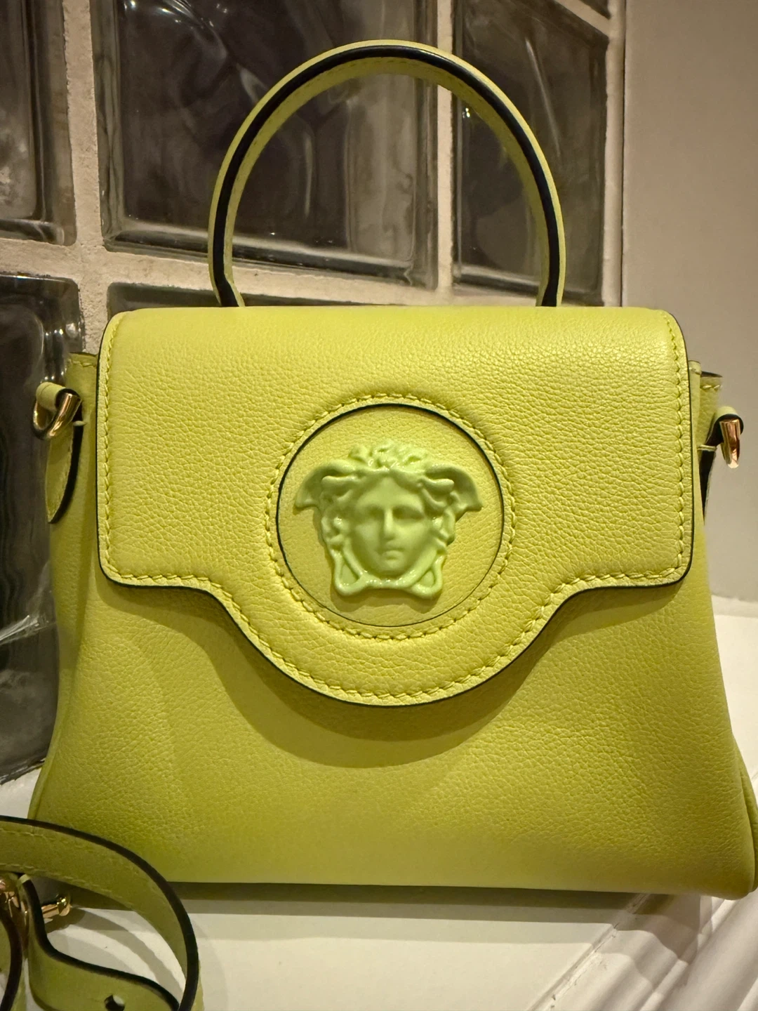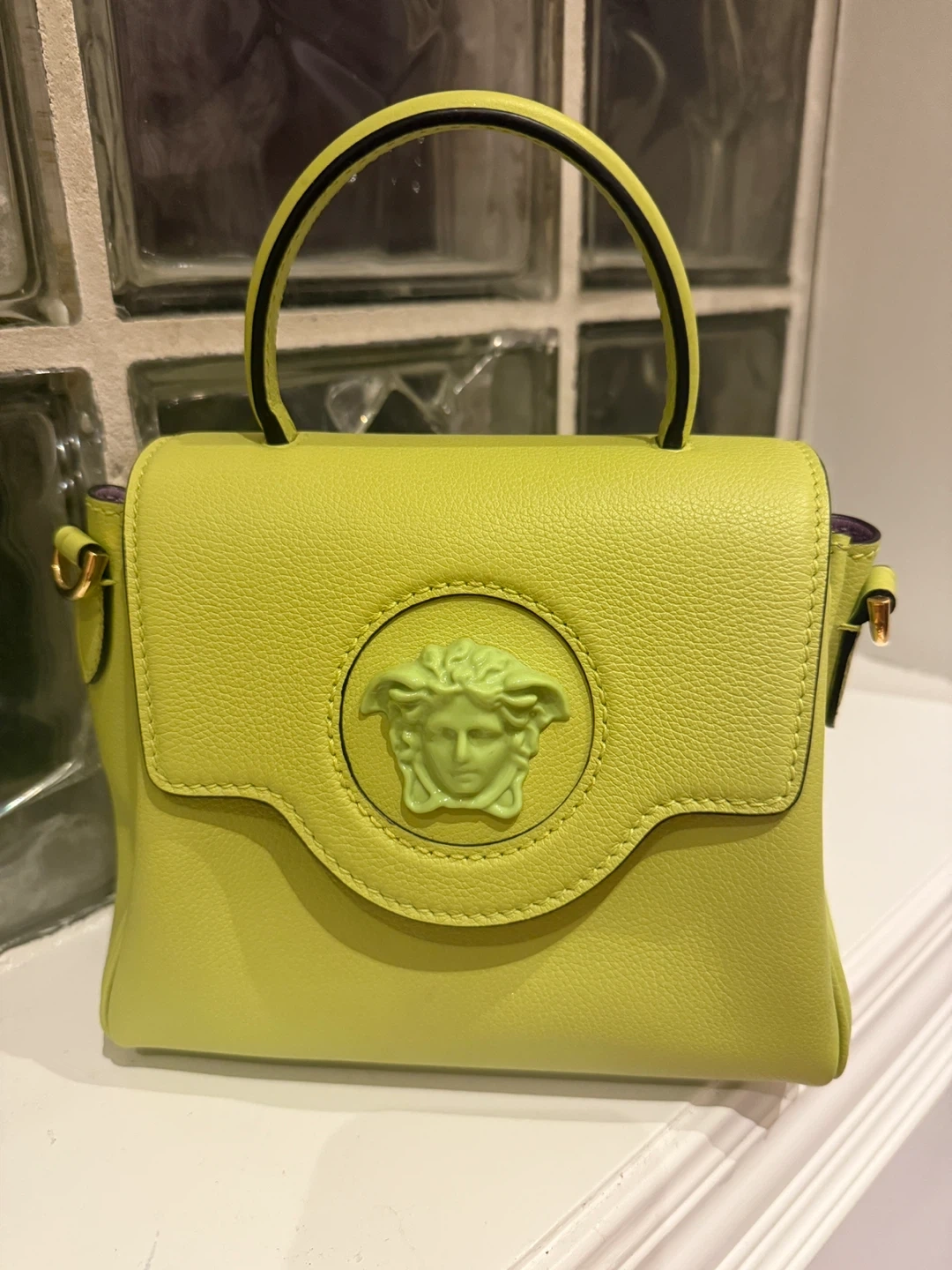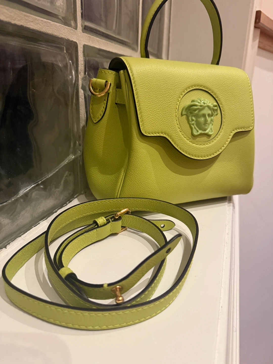 60Almost brand new, original price $3200! Selling a cute Versace La Medusa small handbag in a vibrant lime green colour! It comes with a detachable strap, so you can wear it as a crossbody or carry it by the top handle. The Medusa emblem adds a touch of iconic Versace style to this fun little bag