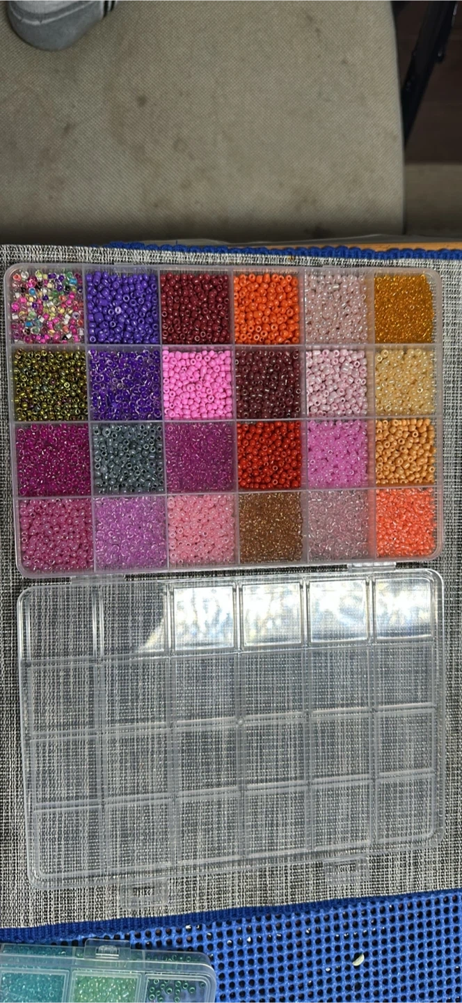 I'm selling a seed bead organizer case with a variety of colours! Great for starting a hobby or for organizing your existing collection. It includes a clear plastic case with individual compartments.