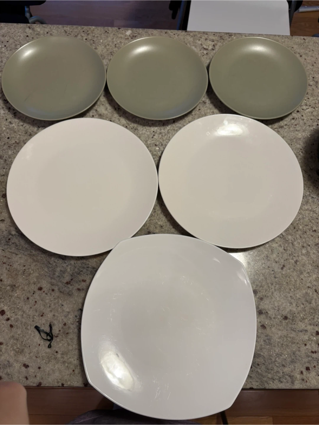 There are 3 IKEA salad plates and 3 Dinner plates.