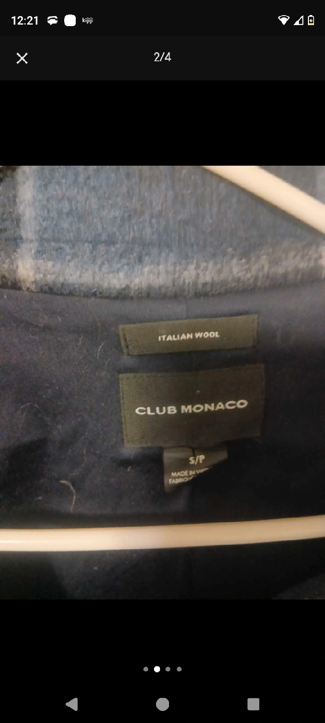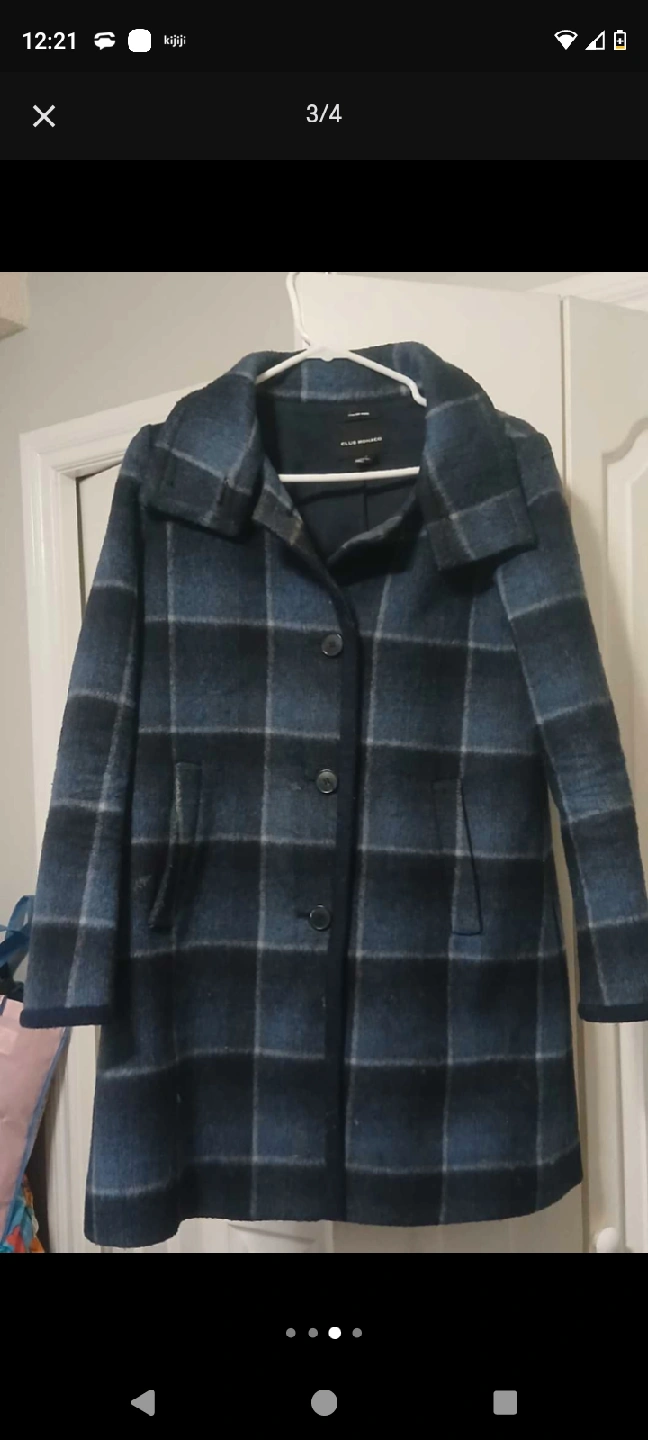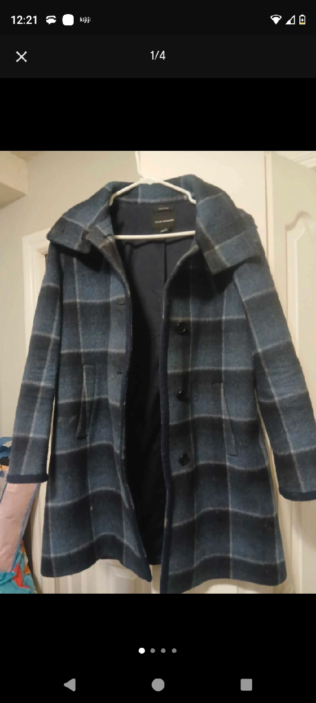 This is a Club Monaco Italian wool coat in excellent condition, perfect for adding a touch of sophistication to any outfit. The plaid pattern is timeless and stylish. It is a size small. Specifications: * Brand: Club Monaco * Material: Italian Wool * Size: Small * Colour: Blue Plaid Spruce up your wardrobe with this fantastic find! And just so you know, if this ad is still up, the coat is still available, so don't miss out! Considering t00 quality of the wool and the brand, I'm asking $125 which is a great deal compared to what you'd pay brand new. I based this price on similar items I've seen on Kijiji.