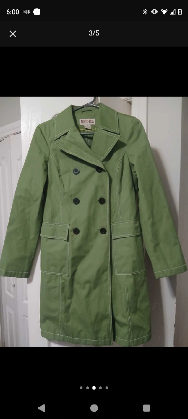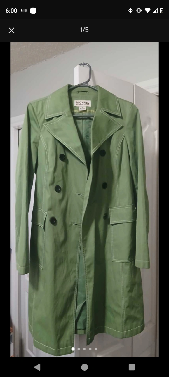 A lovely green trench coat from Michael Kors! It's a size small and in great condition. Perfect for spring or fall weather