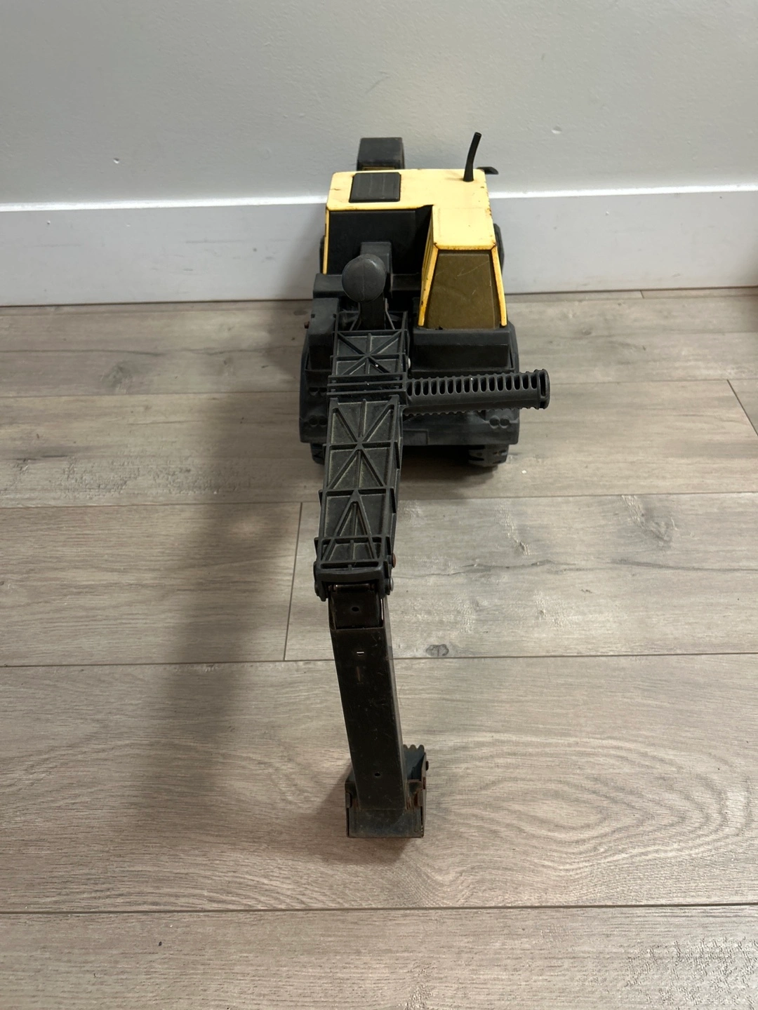 Selling a vintage Tonka excavator truck toy. It shows signs of wear and tear, but it's still a cool piece for any collector or kid who loves construction vehicles