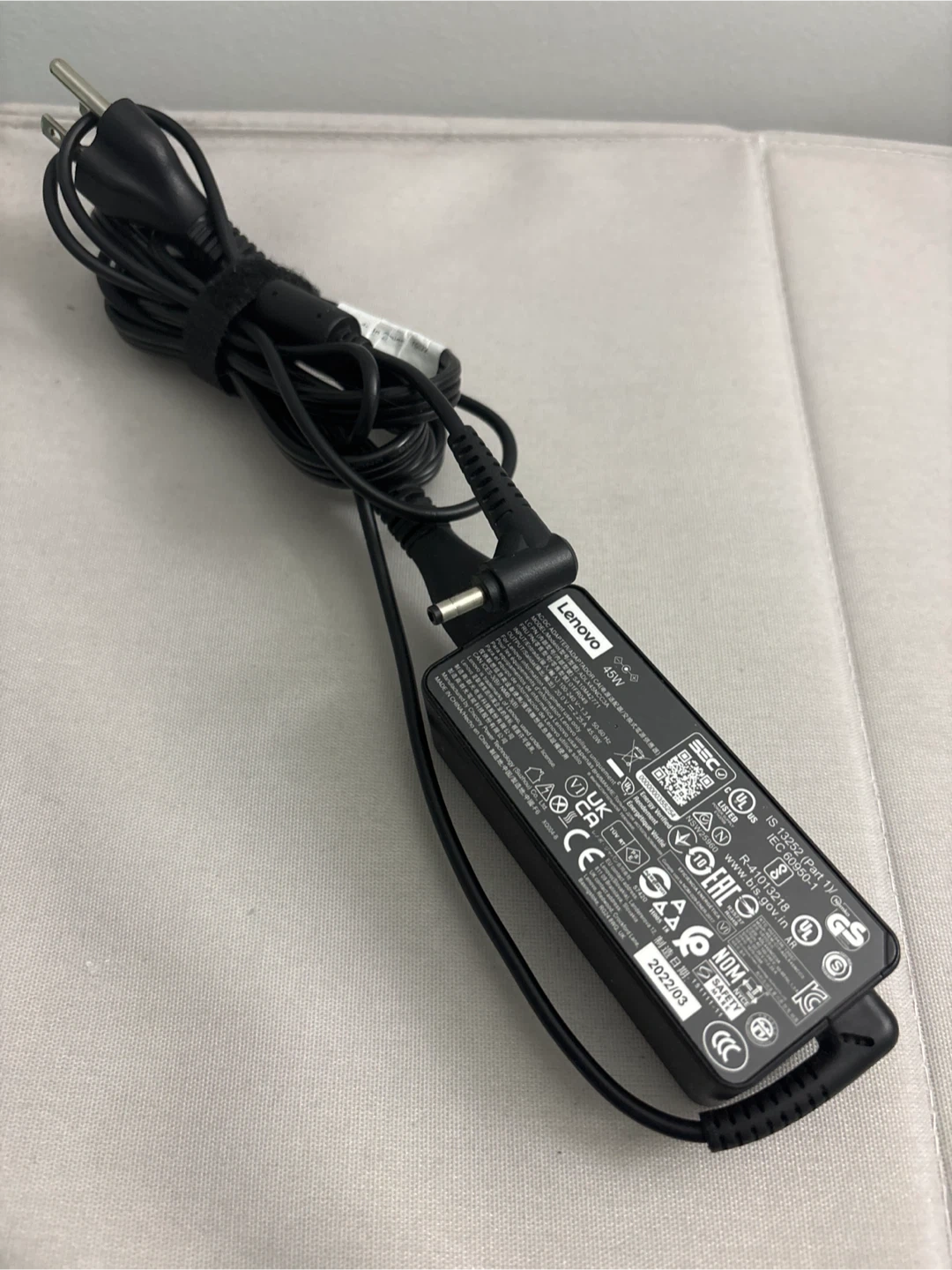 Selling a Lenovo 45W AC adapter. It's in great condition and ready to power your laptop! It outputs 20.0V at 2.25A, or 5.0V at 2.0A, for a total of 45.0W. Manufacturing date is 2022 March