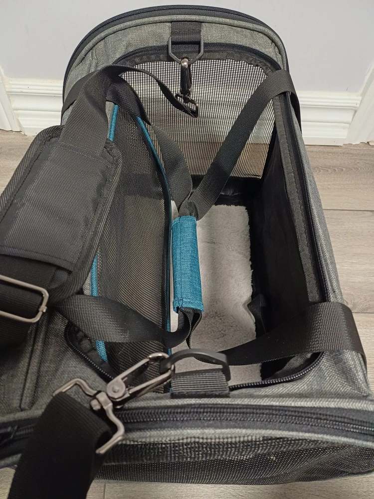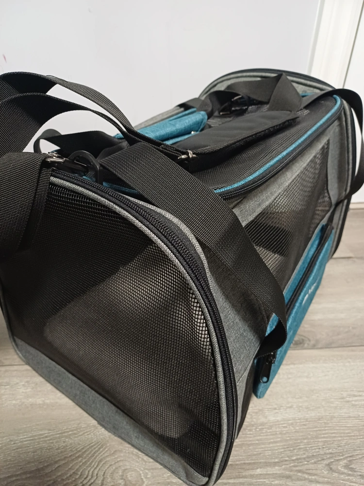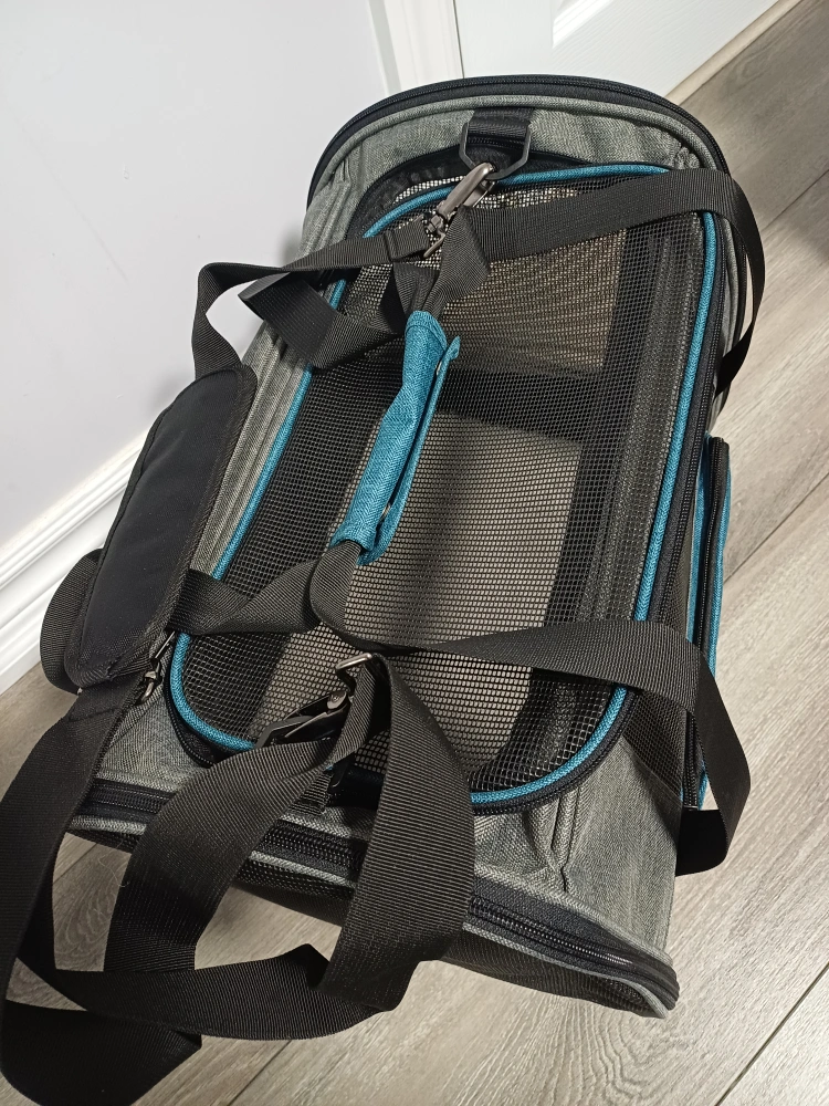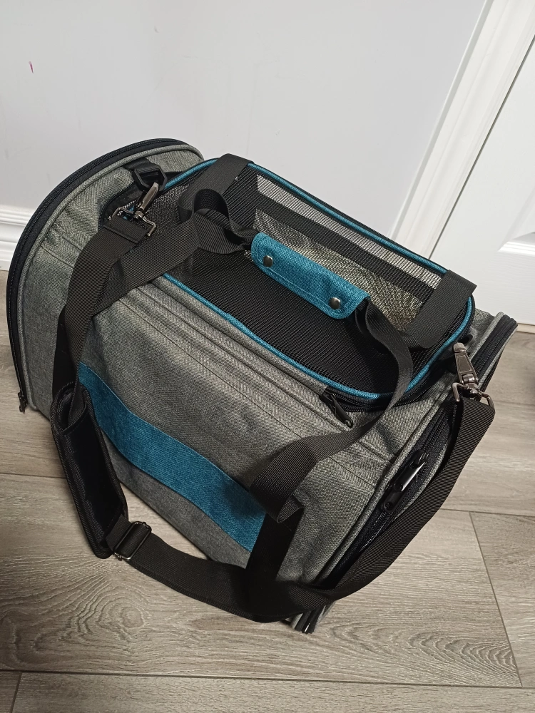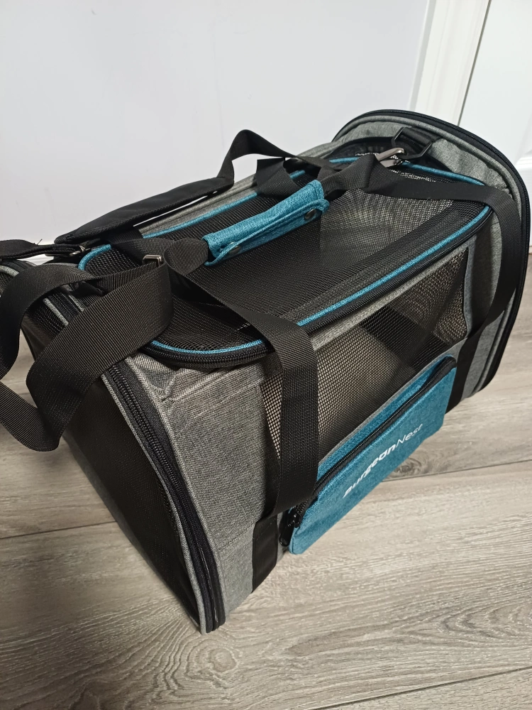 96Selling a Brand New BurgeonNest pet carrier in super excellent condition. It features a grey and teal colour scheme, with mesh windows for ventilation and visibility. Perfect for transporting your furry friend safely and comfortably! 17x12.5x11