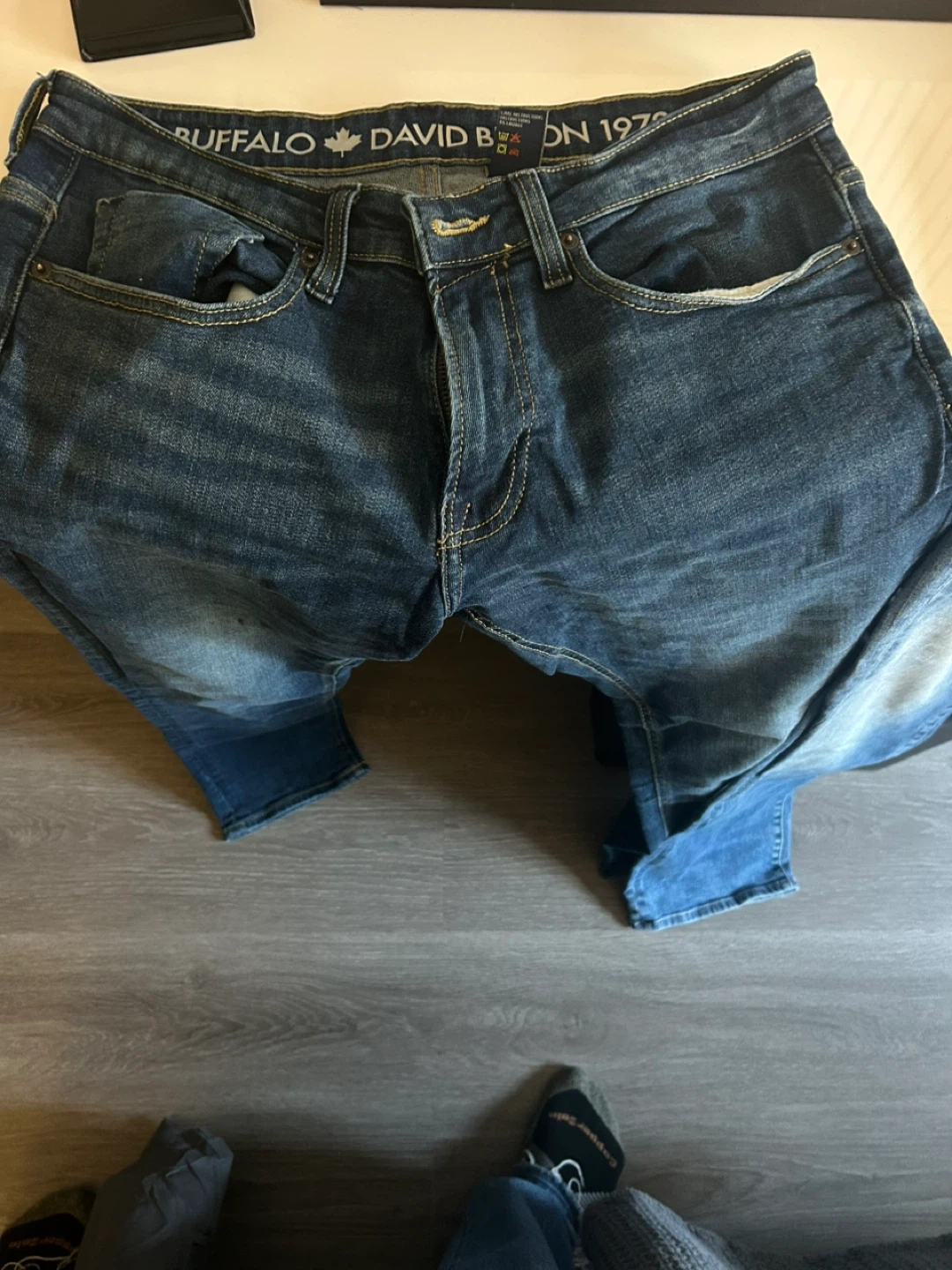 Blue 32x32 David Bitton 1972 and a set of winter gloves(new). They're in great condition and ready for a new home!