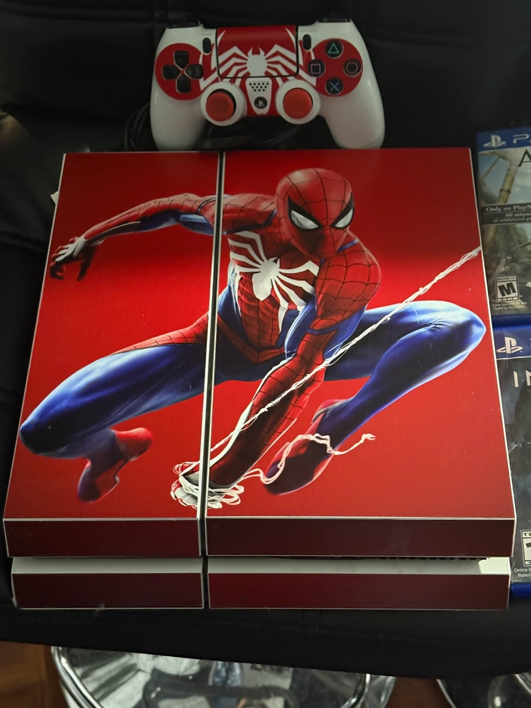 PlayStation 4 with Spiderman Skin and Games