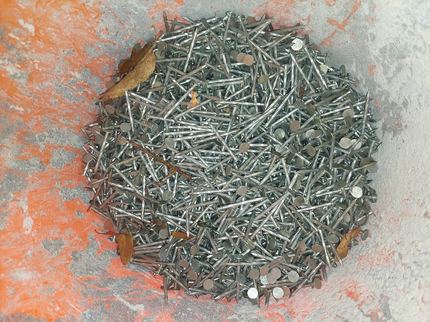 Over a quarter home depot bucket filled with 1 3/4 inch nails. (Thr black line is where it is filled to) 30lbs minus the weight of the bucket. pick up west mountain hamilton.