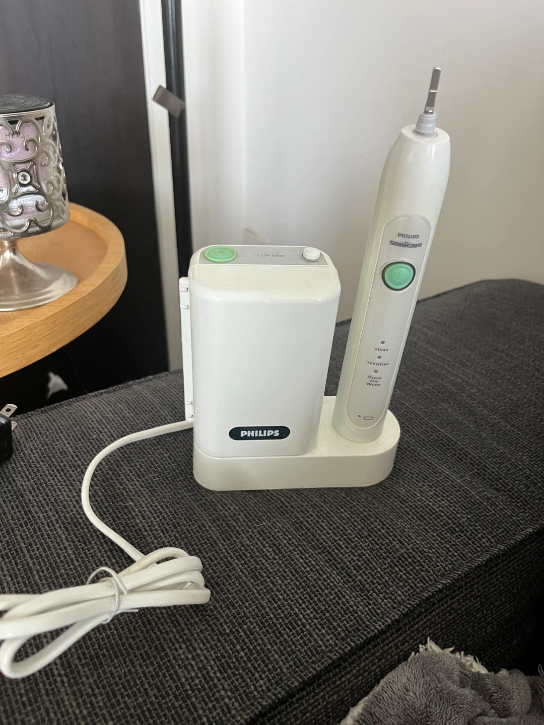 Selling a Philips Sonicare toothbrush! It comes with a UV sanitizer to keep your brush heads clean. This was purchased in Korea so I’ll include the extender so it works for the outlets here