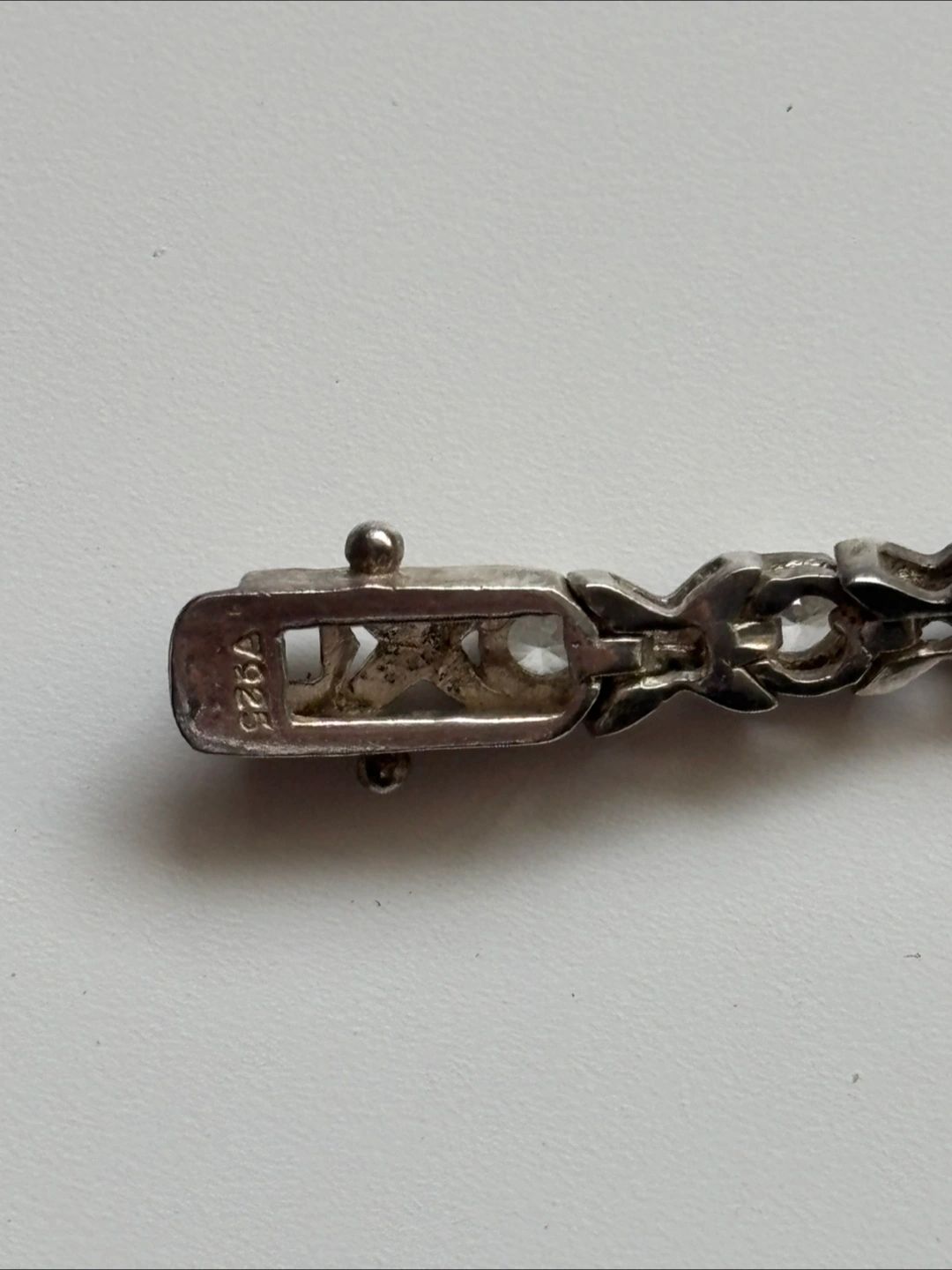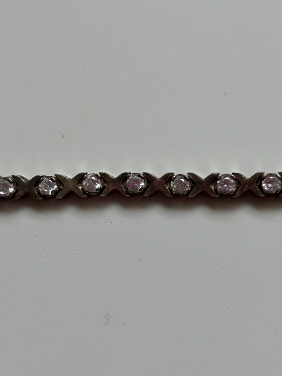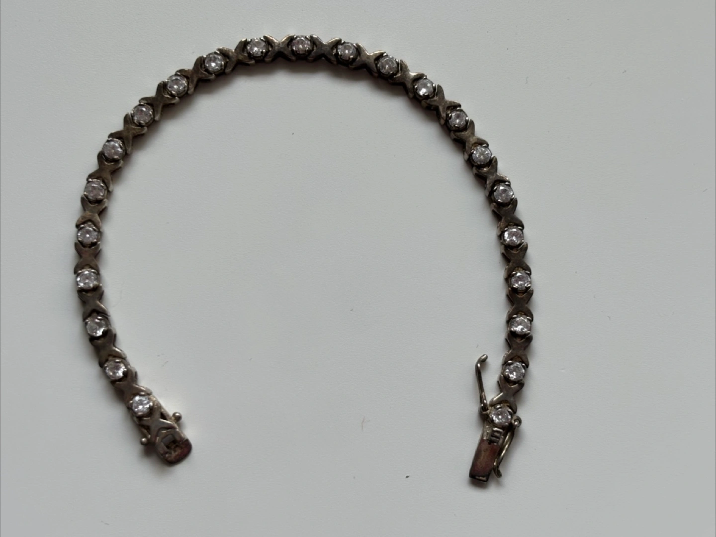 Selling a lovely sterling silver bracelet! It's approximately 7.25 inches long and features cubic zirconia stones. The bracelet is marked "925", indicating it's made of sterling silver