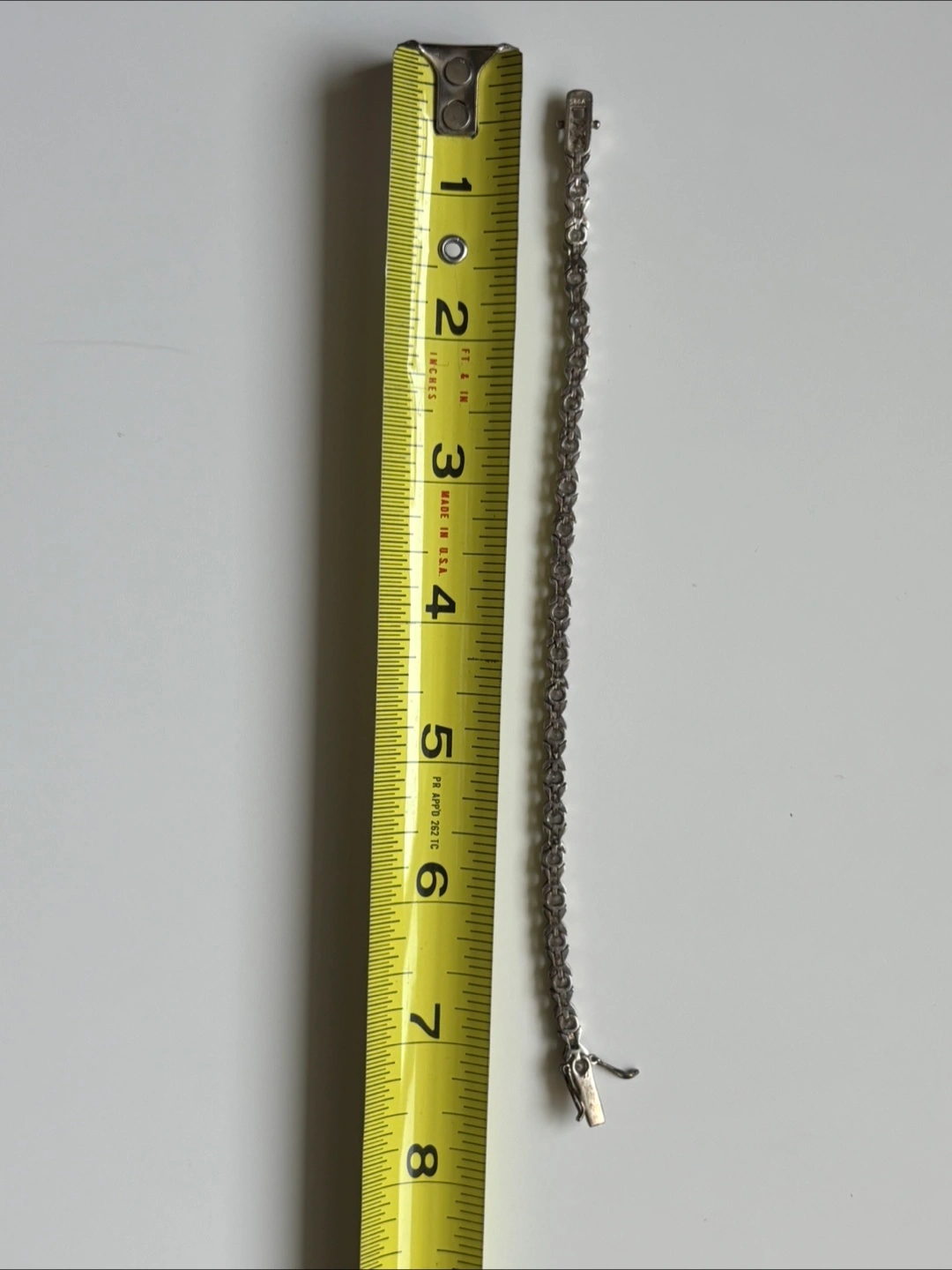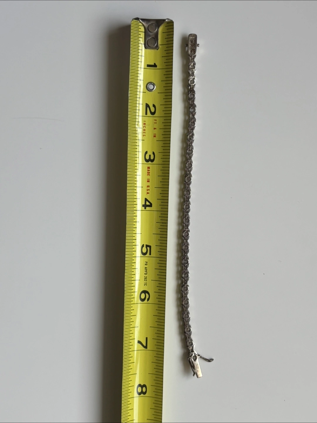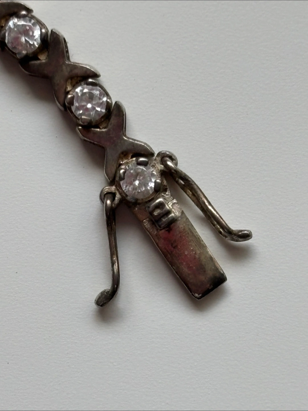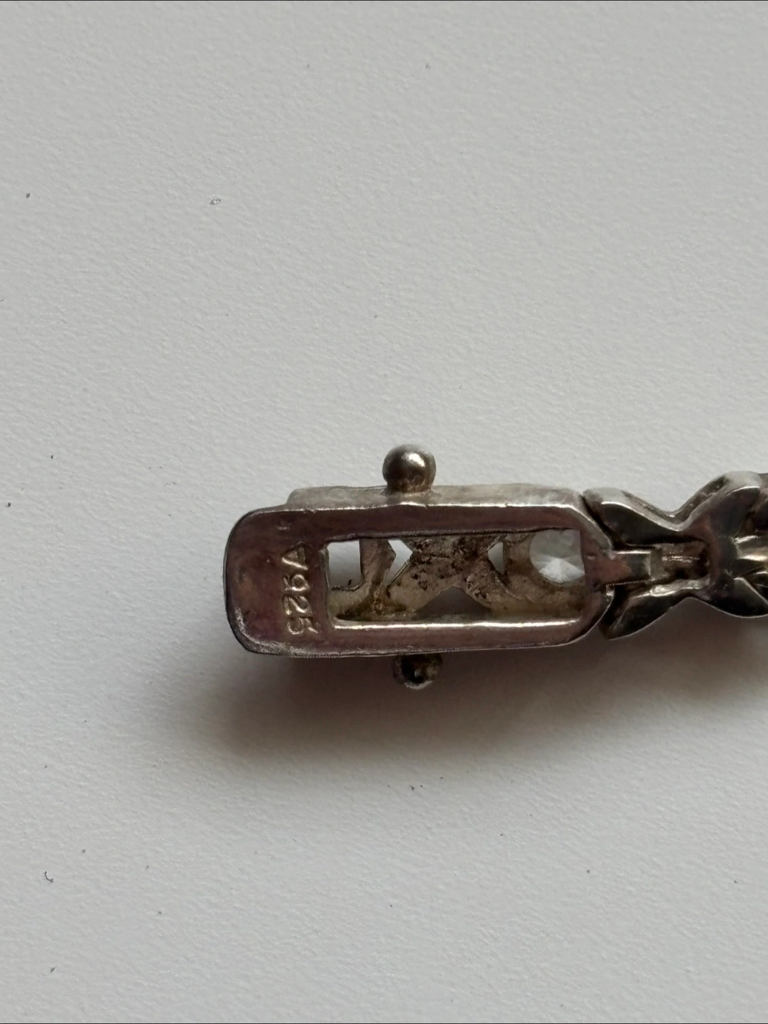Selling a lovely sterling silver bracelet! It's approximately 7.25 inches long and features cubic zirconia stones. The bracelet is marked "925", indicating it's made of sterling silver