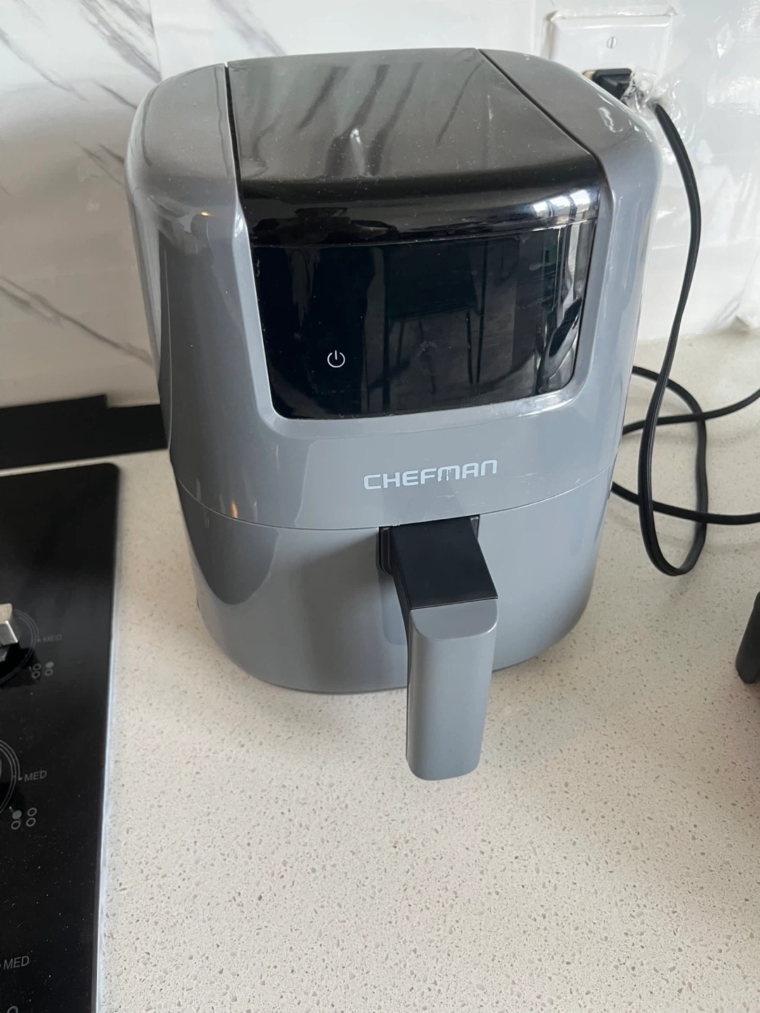 Selling a Chefman air fryer in great condition! It's a handy appliance for quick and easy meals. It's grey and would fit in with any kitchen decor. If you're interested, send me a message