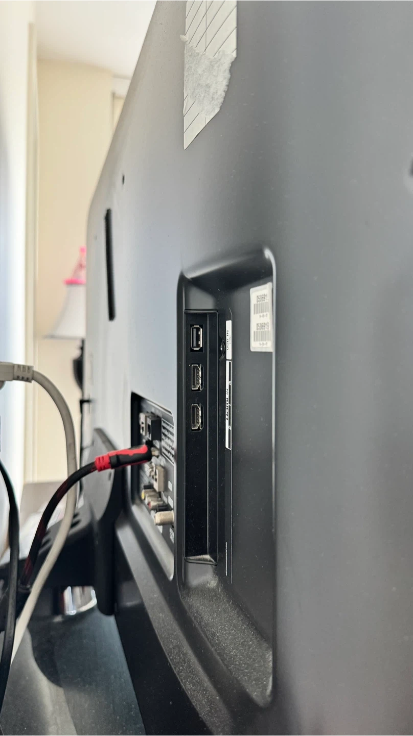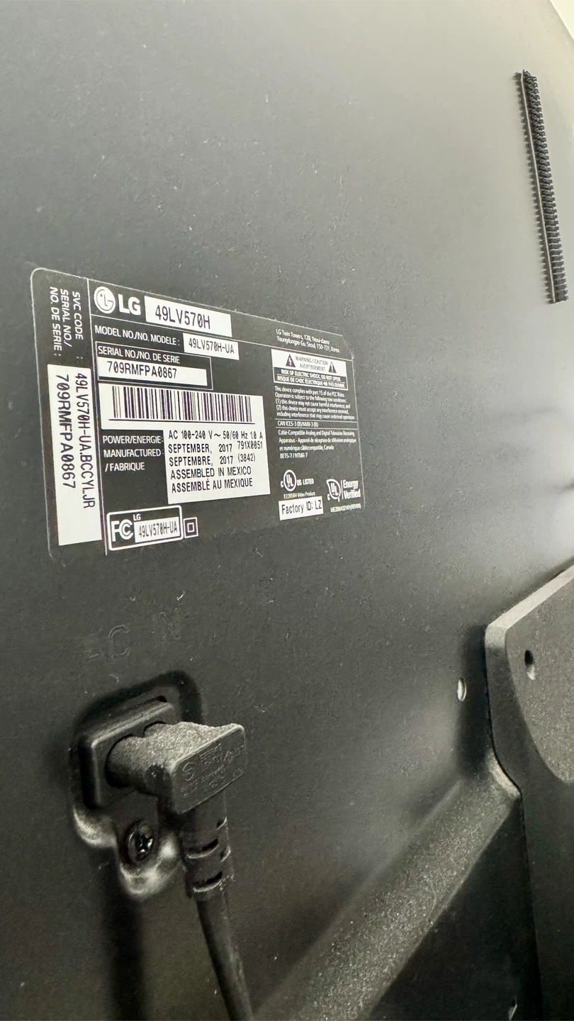 Selling an LG 49LV570H 50-inch TV. It's in good condition. Also included is a dark brown dresser with silver handles.