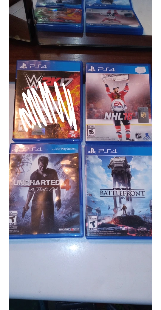Selling 3 PS4 games. Available are , Uncharted 4 A Thief's End, NHL 16, and Star Wars Battlefront. All games are in great condition and ready for a new player! $ 6 each or all 3 for $12.