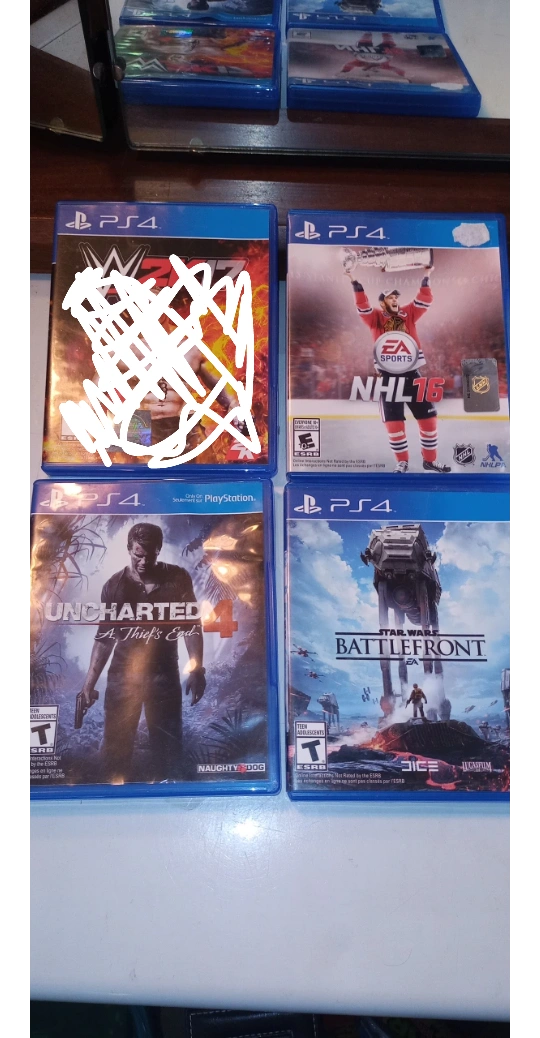 Selling 3 PS4 games. Available are , Uncharted 4 A Thief's End, NHL 16, and Star Wars Battlefront. All games are in great condition and ready for a new player! $ 6 each or all 3 for $12.