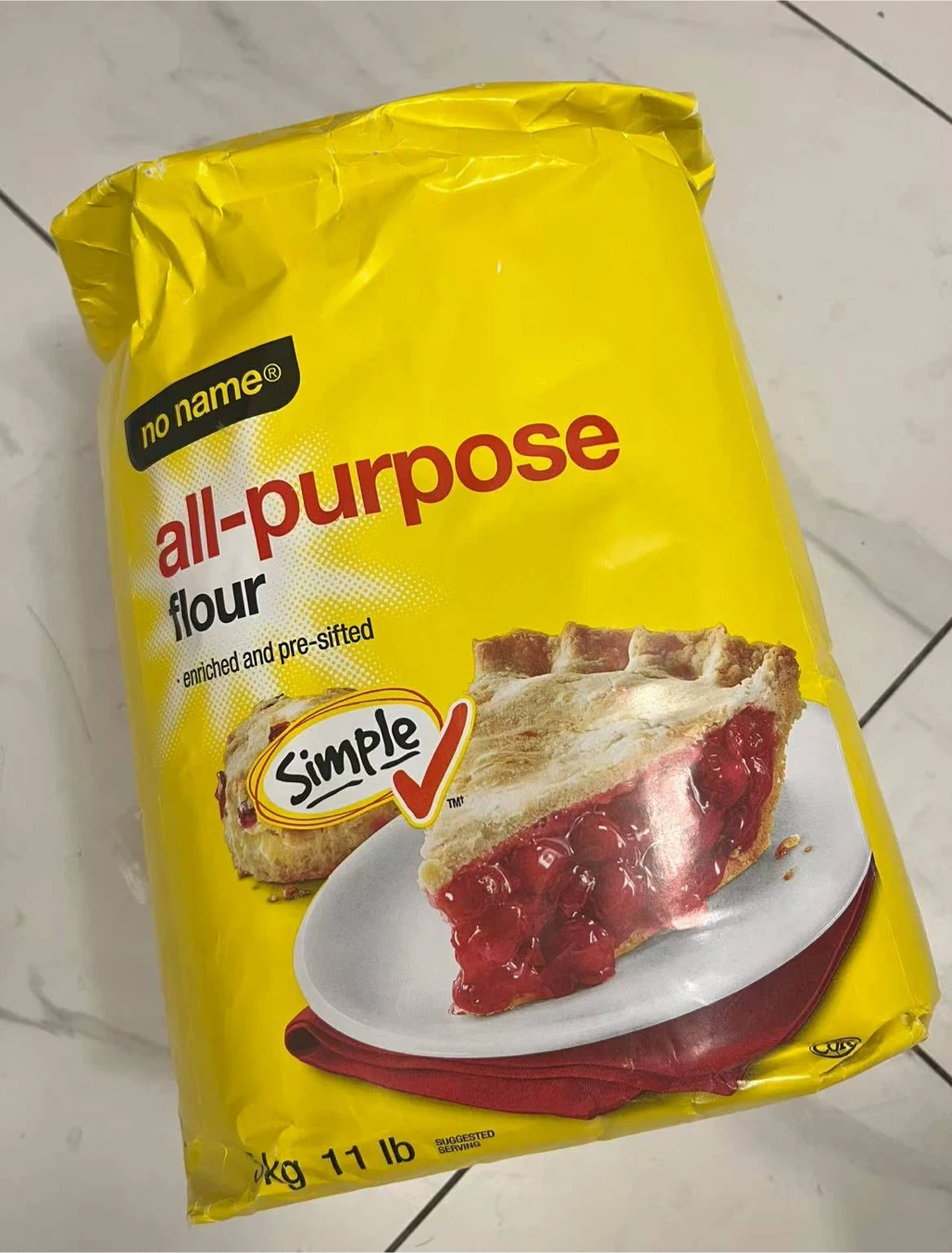 Selling a bag of No Name all-purpose flour. It's enriched and pre-sifted, perfect for all your baking needs! The bag is 11 lb