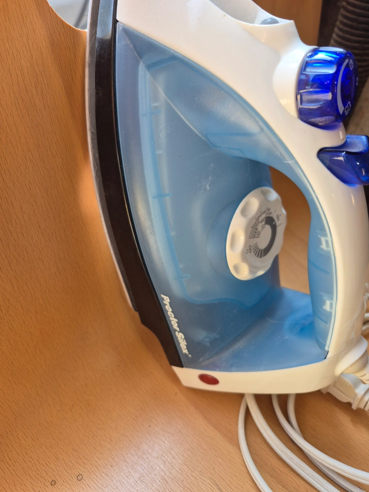Selling a Proctor Silex iron in good condition! It's a reliable iron with a blue and white design. Perfect for everyday ironing needs!