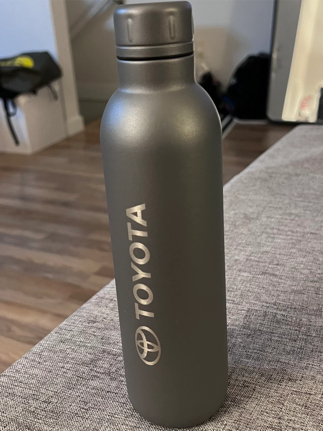 Selling a Toyota water bottle in a sleek grey colour. It's brand new and ready to keep your drinks hot or cold. It's recommended to hand wash only to keep it in tip-top shape