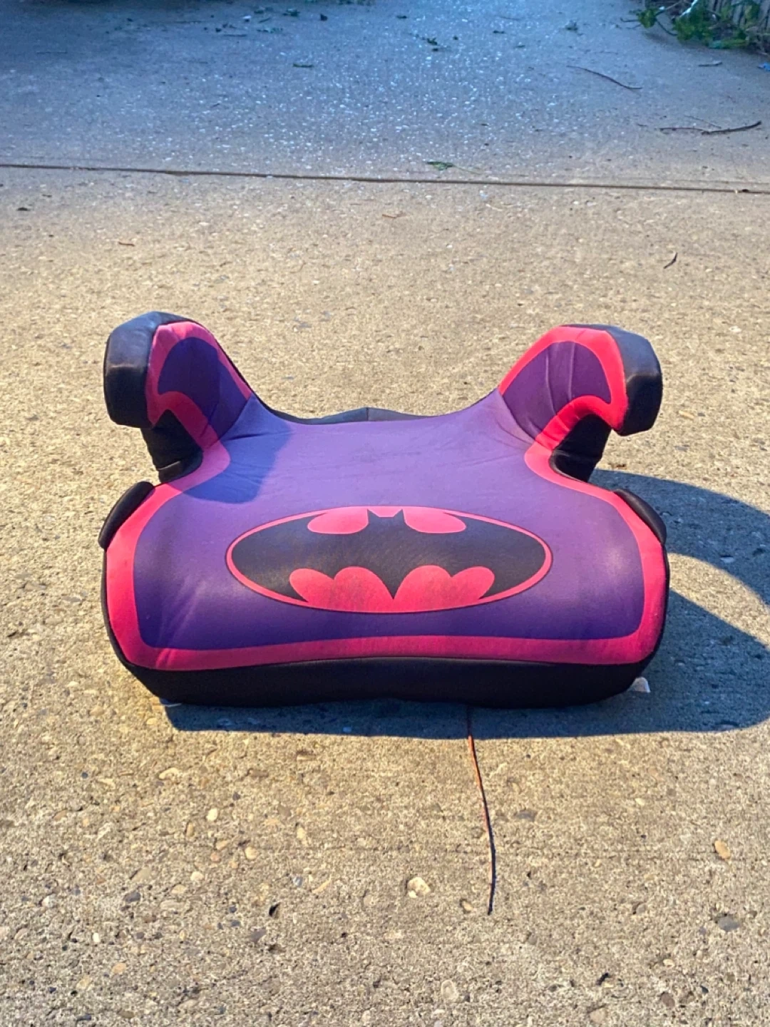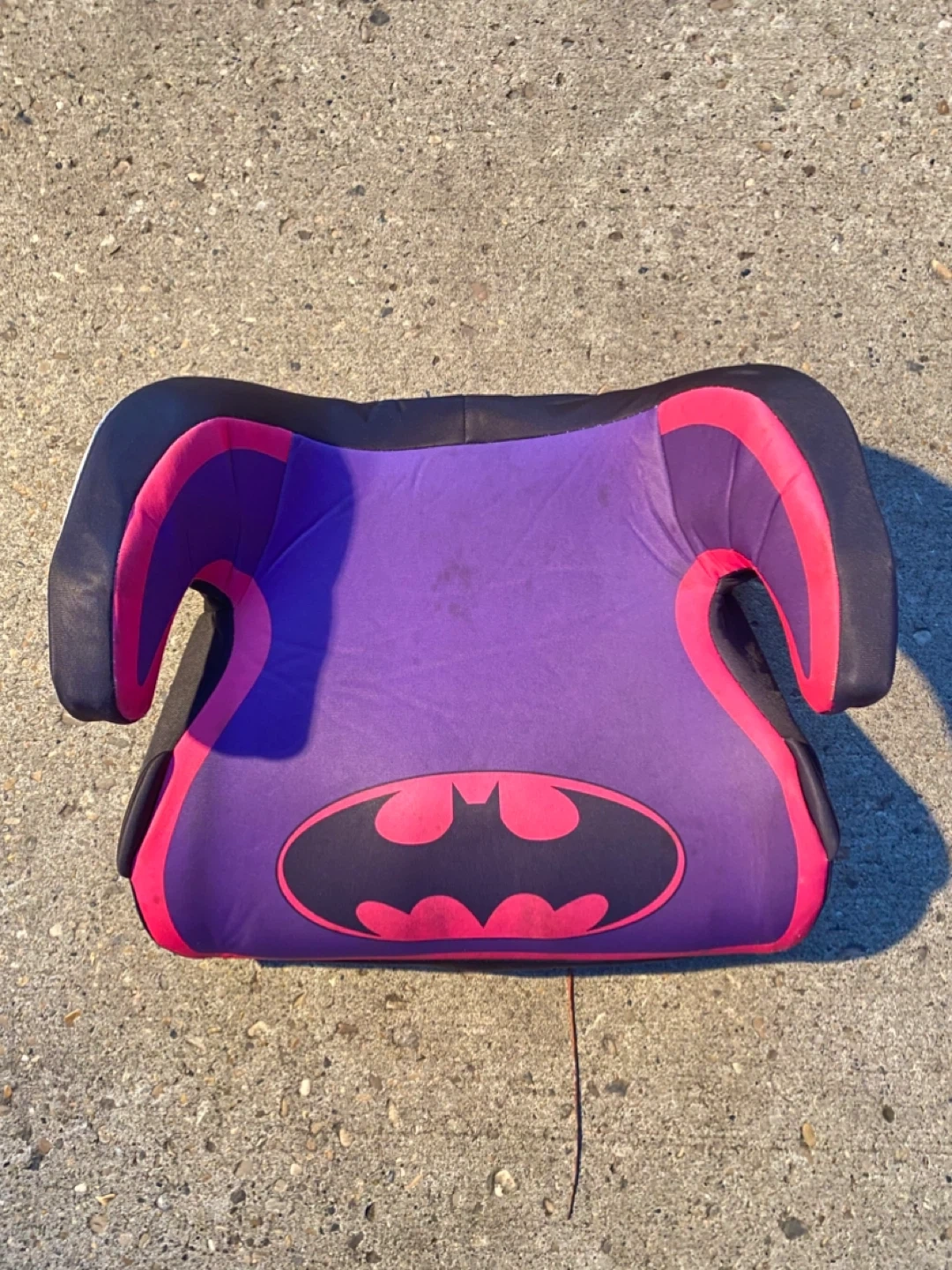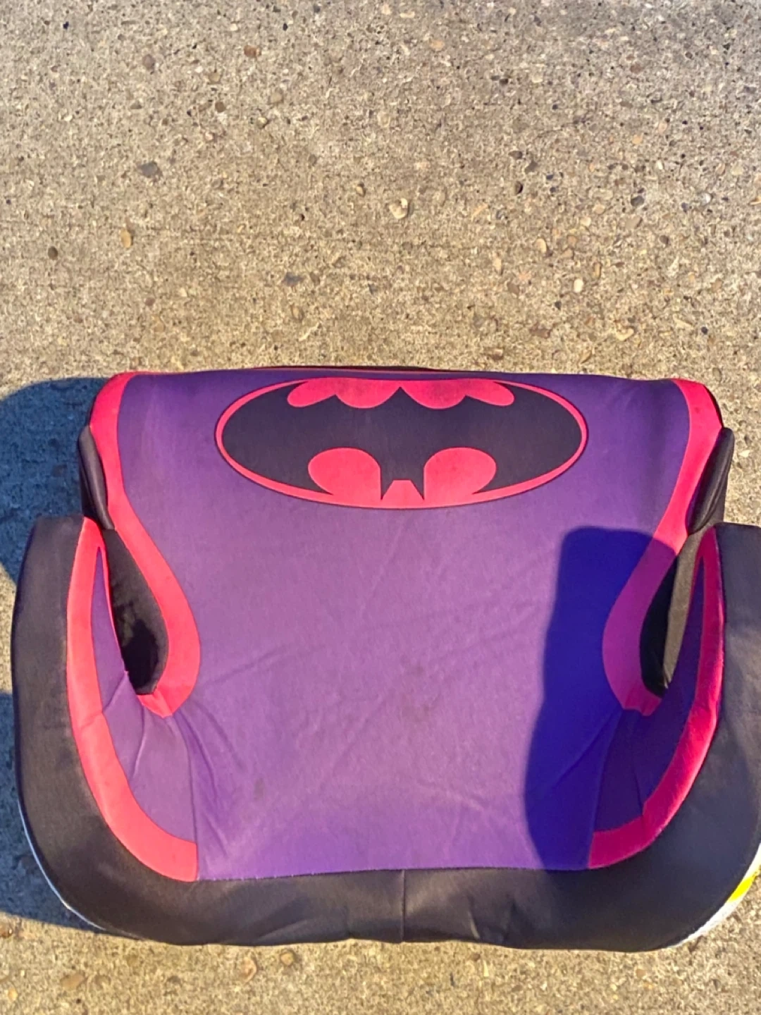 Selling a Batman booster car seat! It's purple and black with the Batman logo in the centre. Perfect for any young Batman fan!