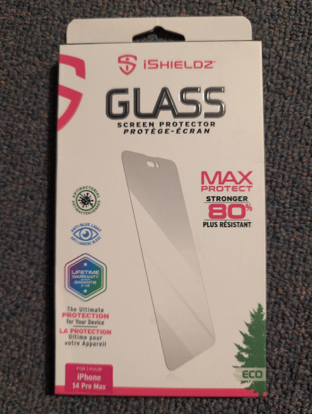 Selling a new iShieldz glass screen protector for the iPhone 14 Pro Max! It offers ultimate protection for your device, is antibacterial, and has an anti-blue light feature. It's designed to be 80% stronger, providing maximum protection. Plus, it comes with a lifetime warranty