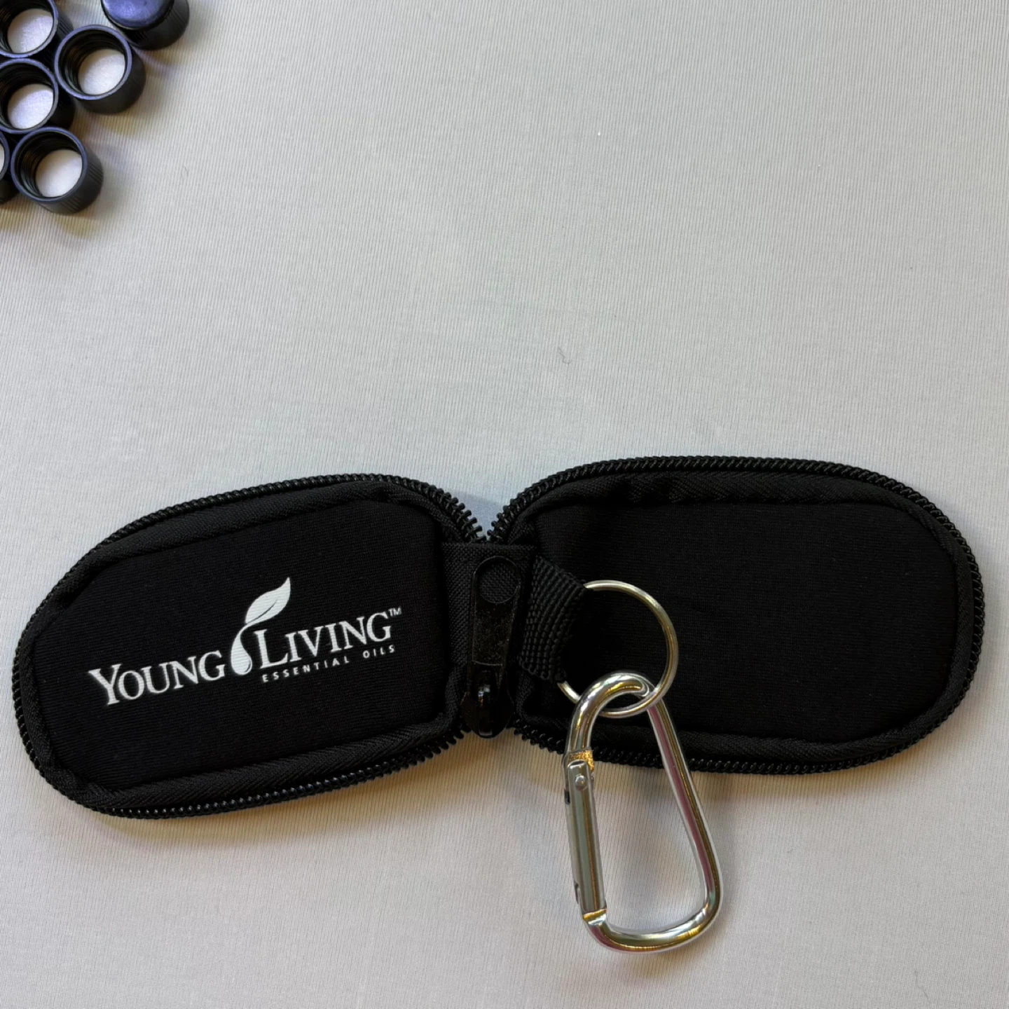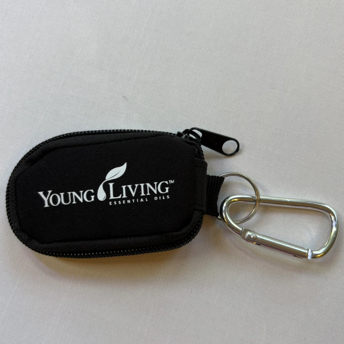Keychain Case: Branded Young Living, with a secure zipper and carabiner clip