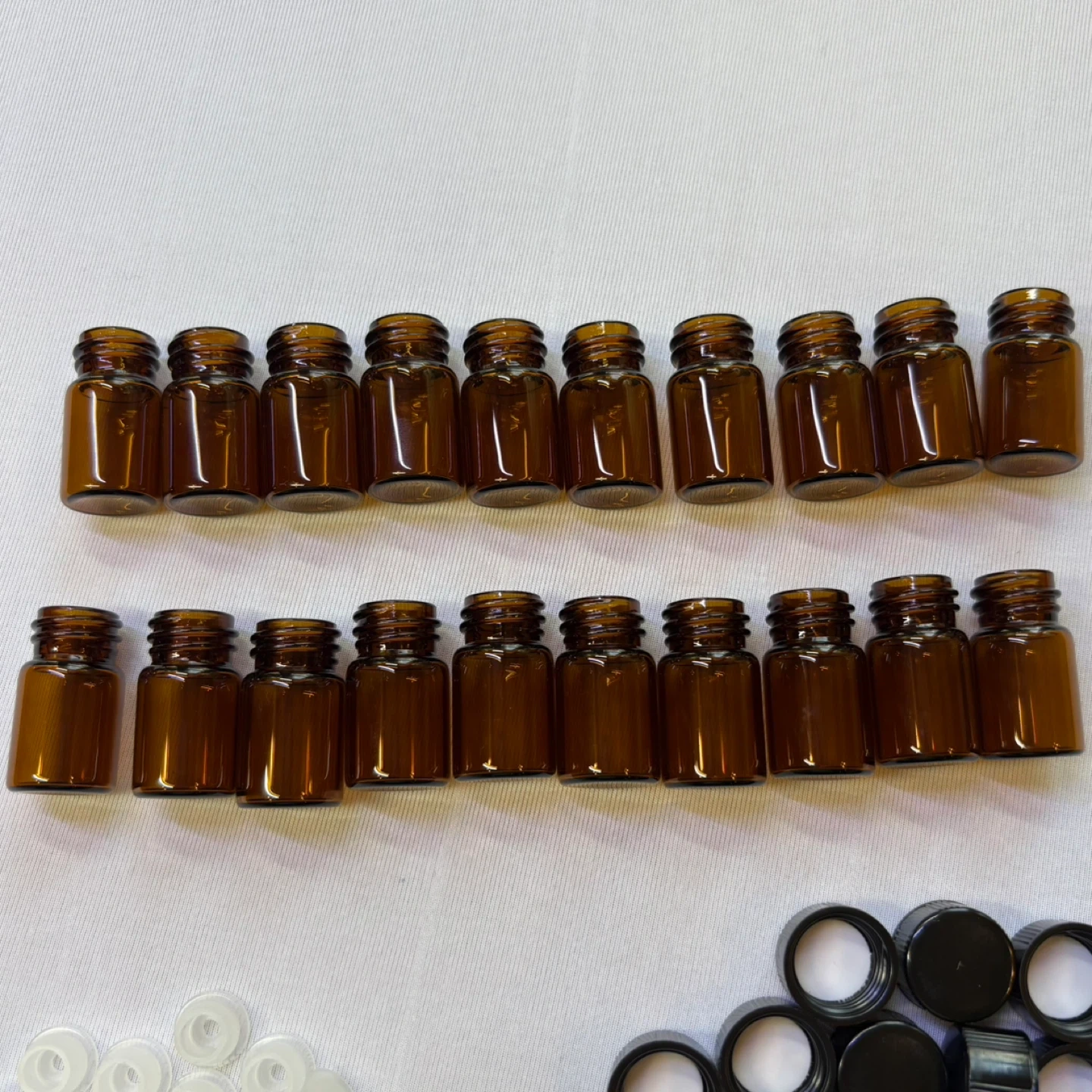 Oil Bottles: 20 amber glass bottles to protect the oils from light (Includes bottle caps and dropper inserts)