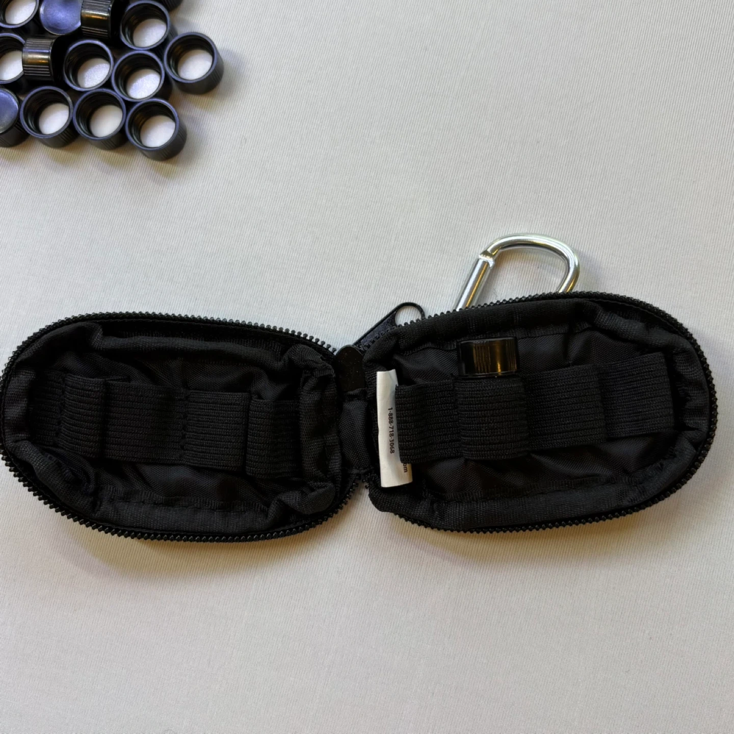 Keychain Case: Branded Young Living, with a secure zipper and carabiner clip
