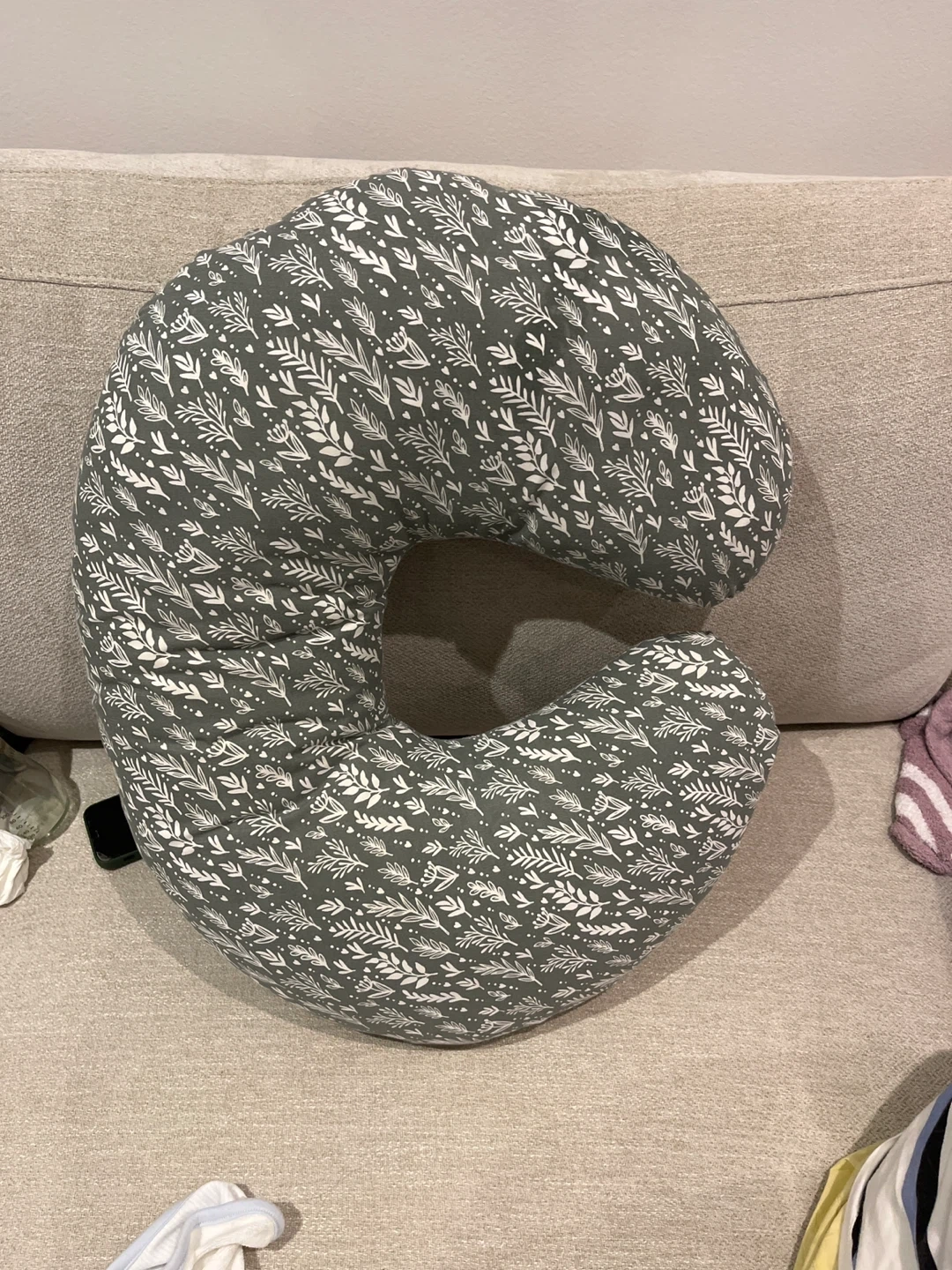 Selling a Dr Brown nursing pillow in great condition! Barely used since i got a bigger one for my bed. It features a grey and white leaf pattern. Perfect for supporting your little one during feeding time. It's soft and comfortable for both you and baby