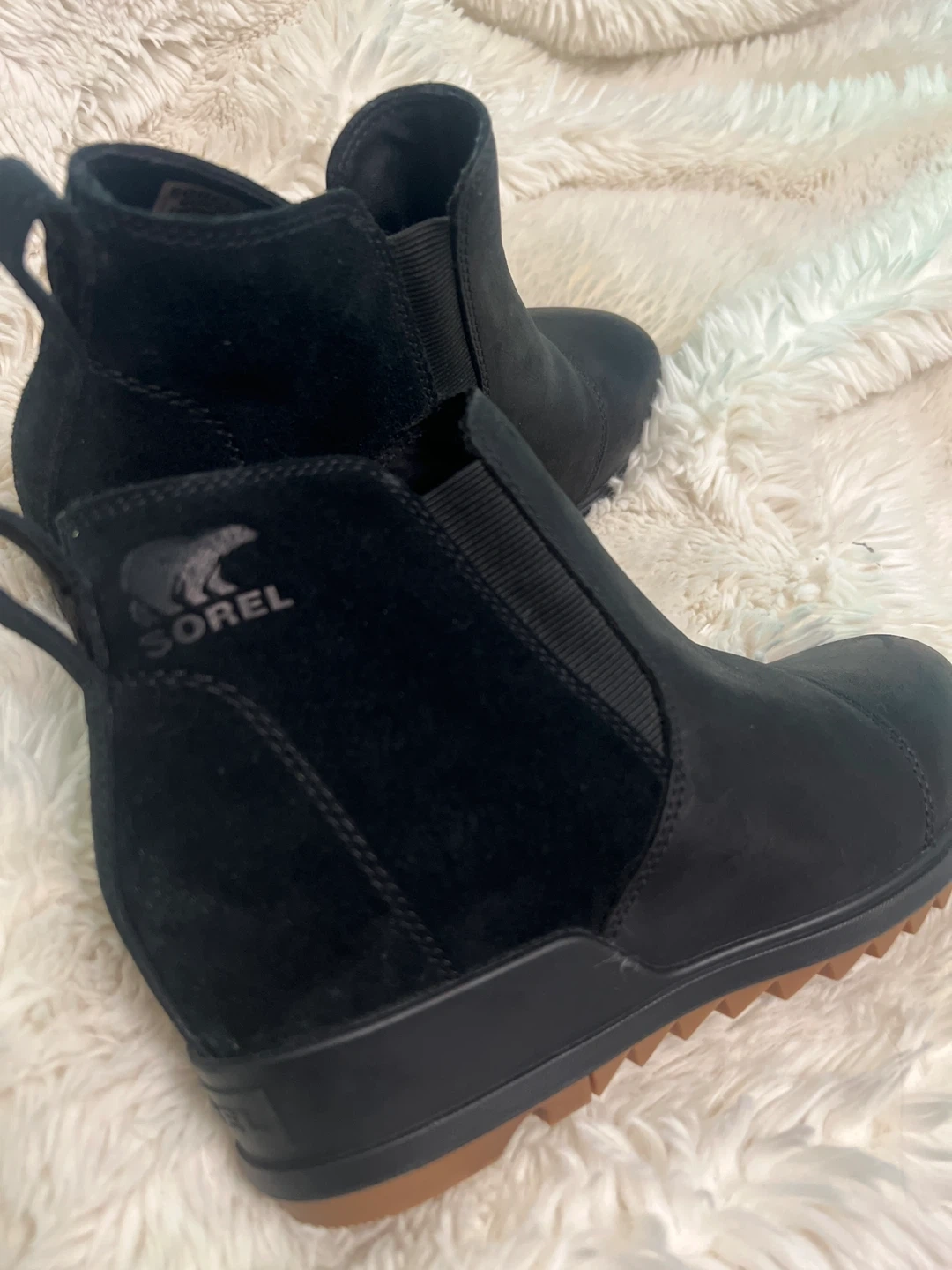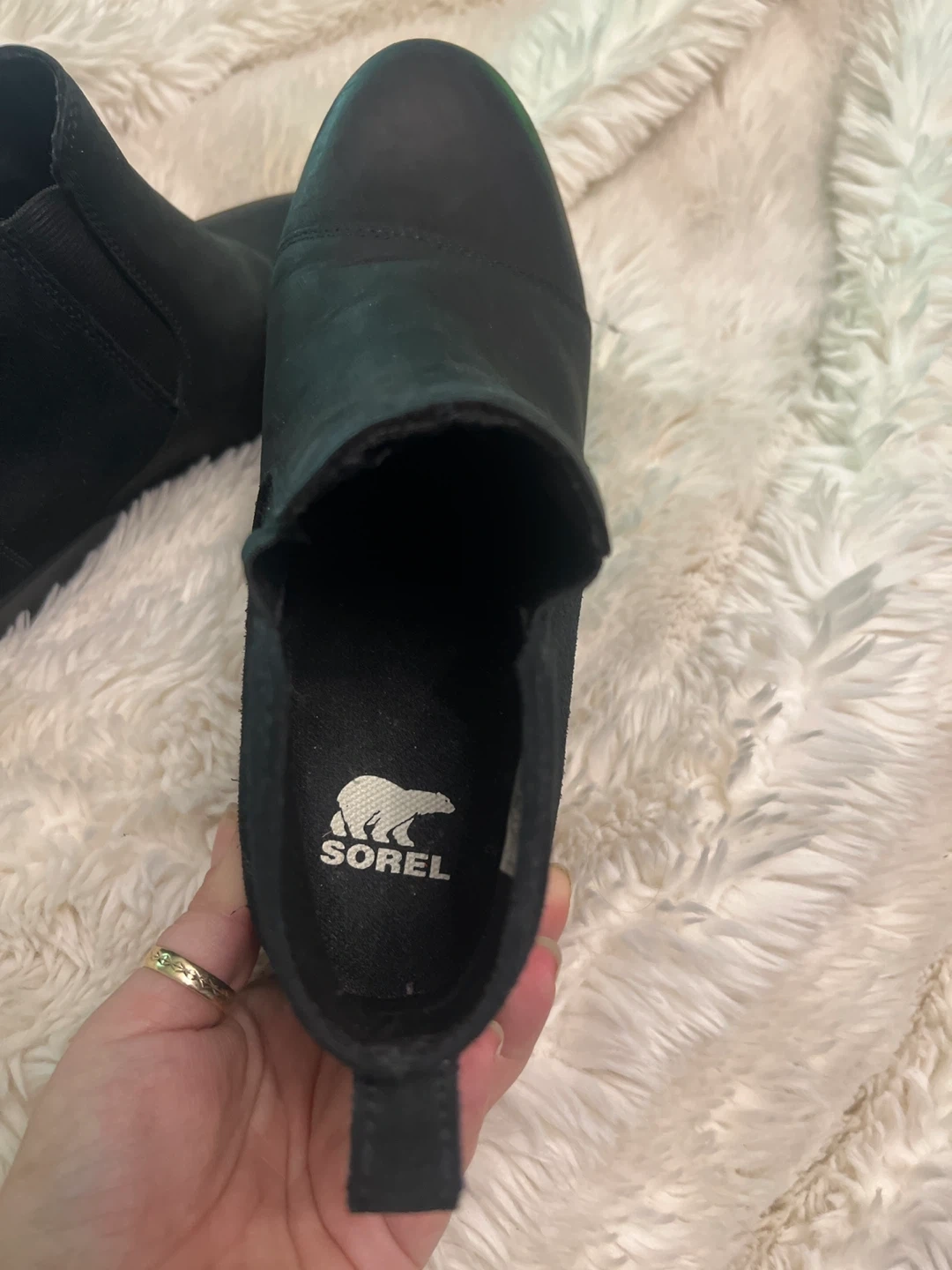 60Selling a pair of Sorel ankle boots in black! They feature a mix of leather and suede. The soles are a cool lug design. Great for fall & winter! Never worn. Bought online and they are too small for me. Able to meet in North or West Van and Kits area.