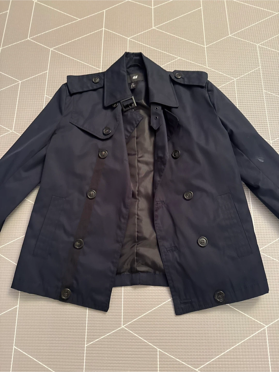 Classic H&M trench coat in a stylish navy blue! Size 36R. It's in great condition and perfect for layering during those breezy Canadian days. A versatile addition to any wardrobe!