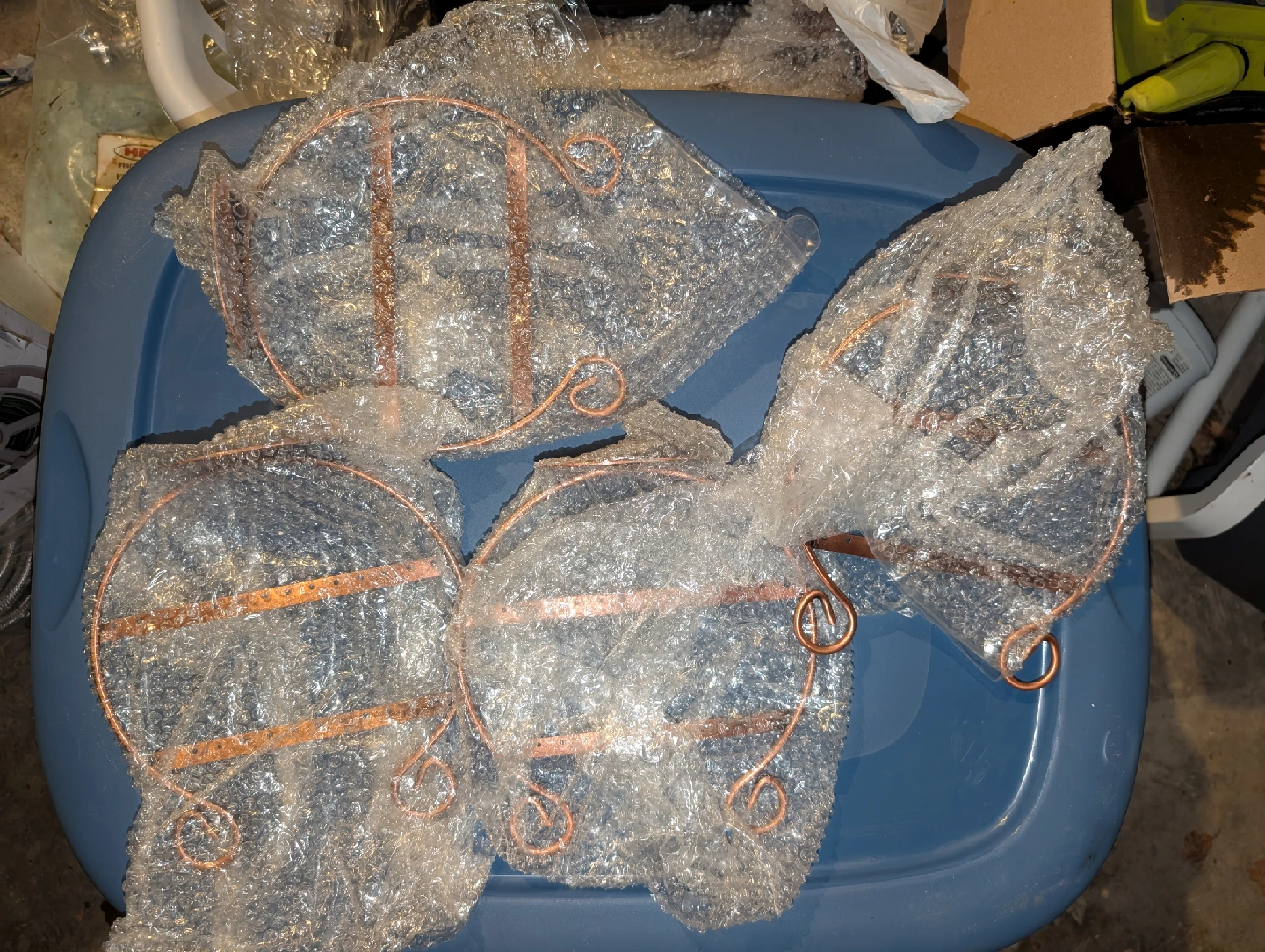 Selling a set of metal stands. They are in good condition and ready to display your favourite jewelry. The stands are copper-coloured.