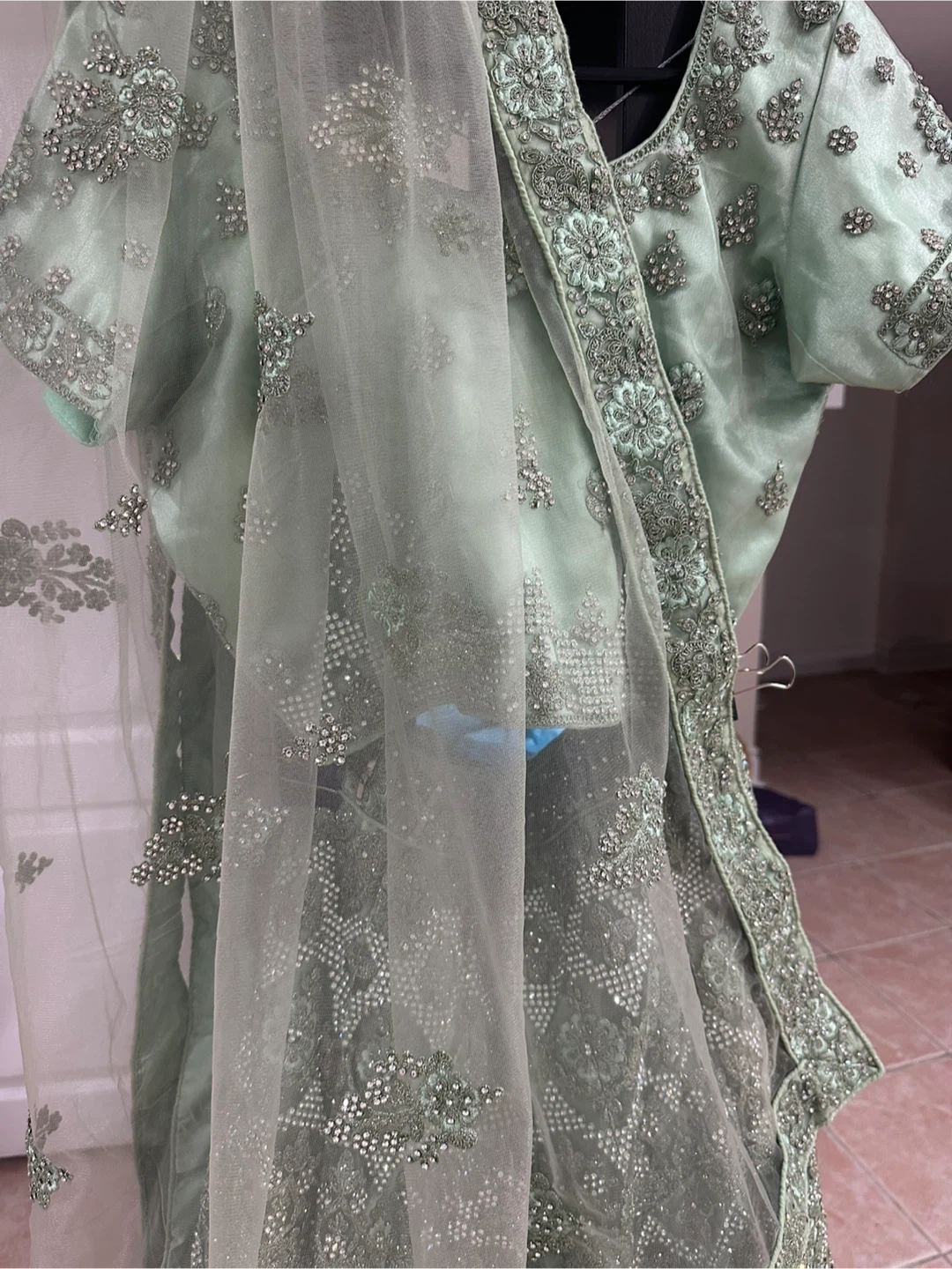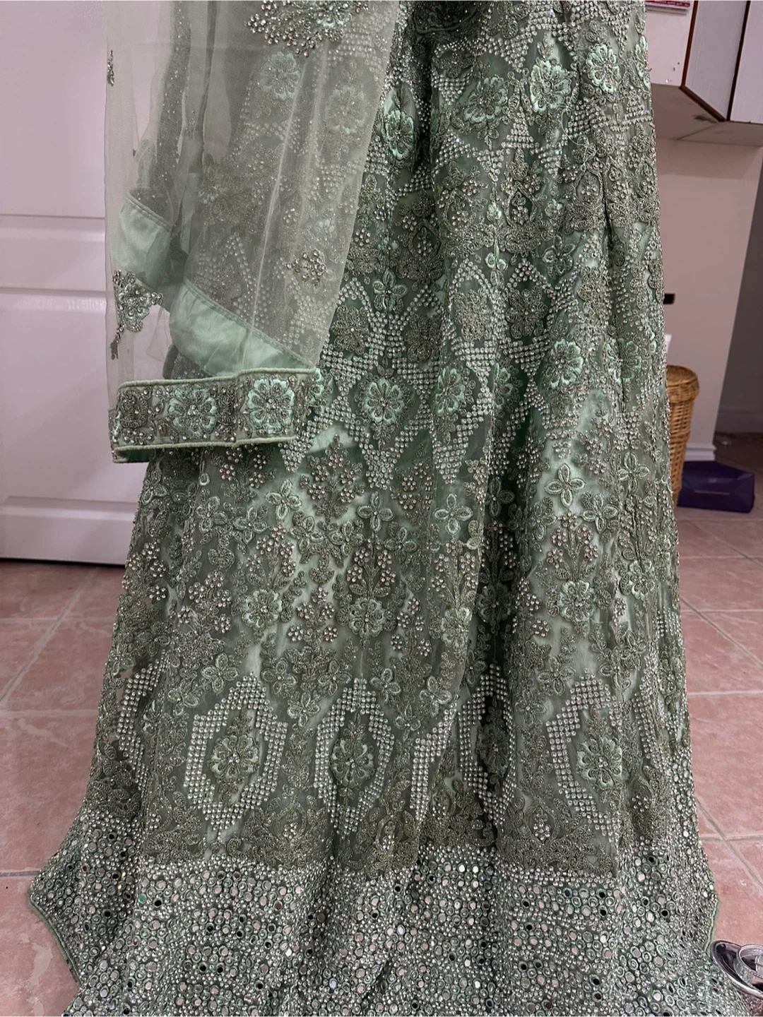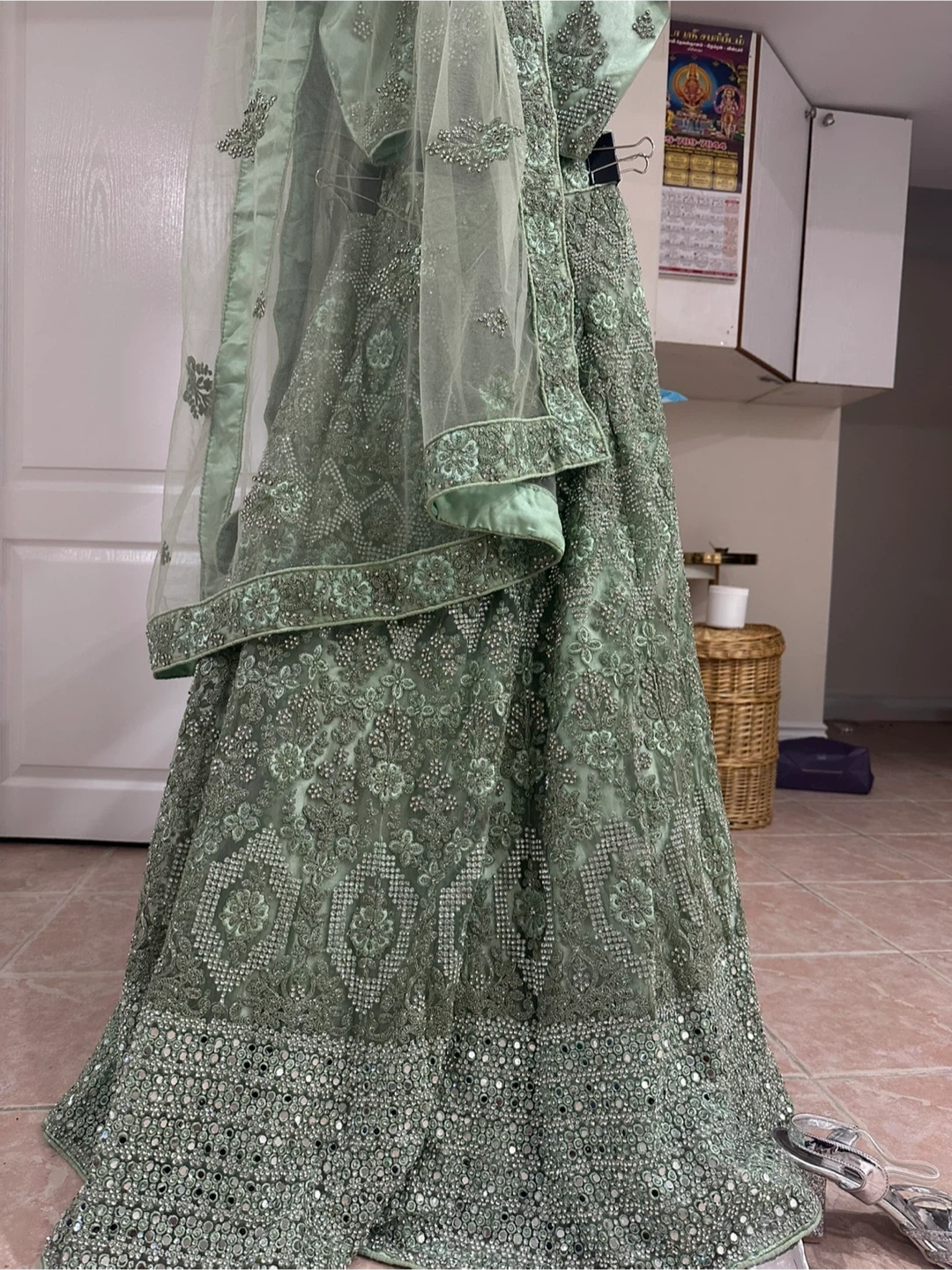 Beautiful green stonework bridal lehenga set with intricate embroidery. Perfect for a special occasion!! Skirt has can can skirt stitched in. Lots of room in blouse to take in or extend $350 OBO Pickup in Brampton