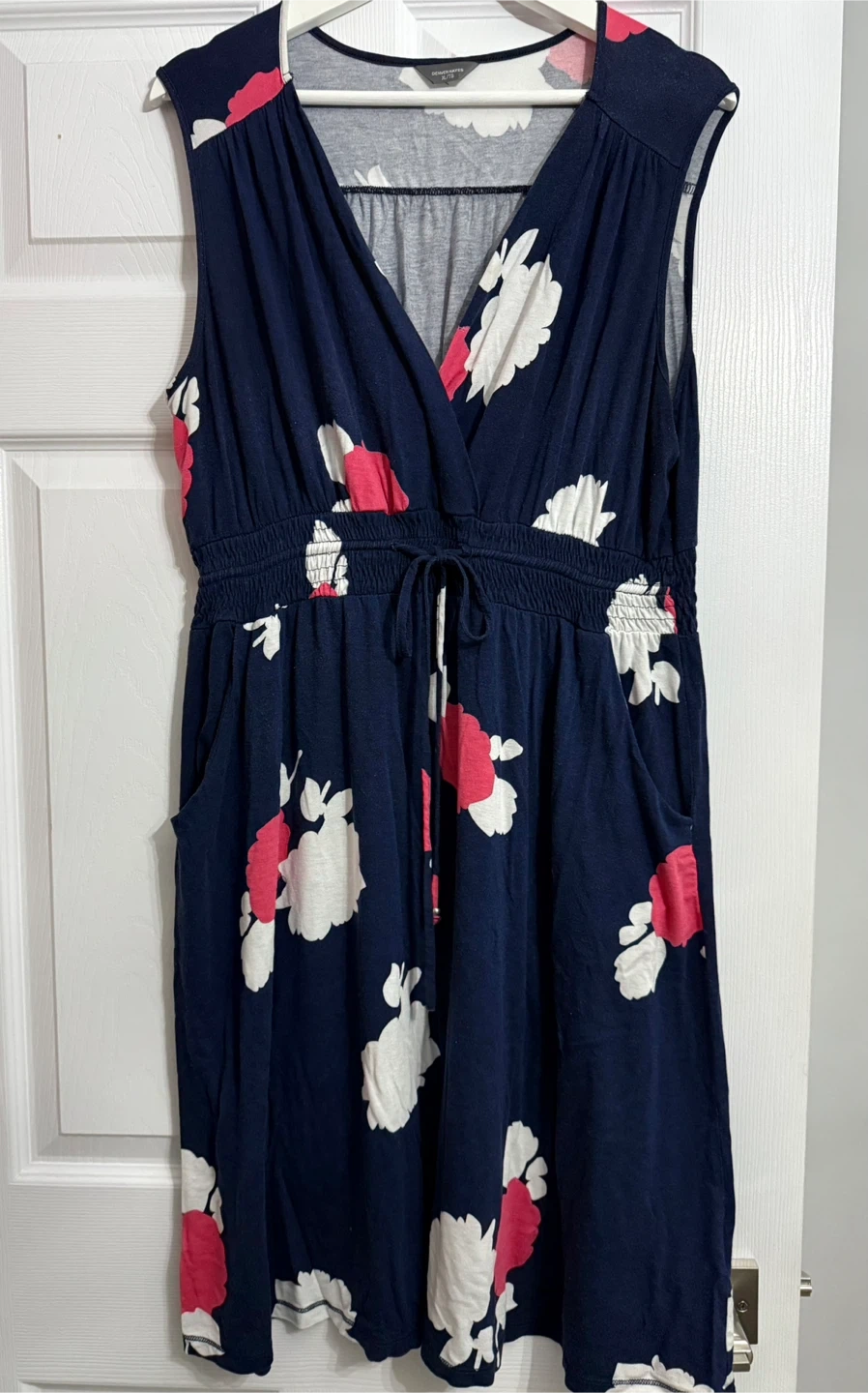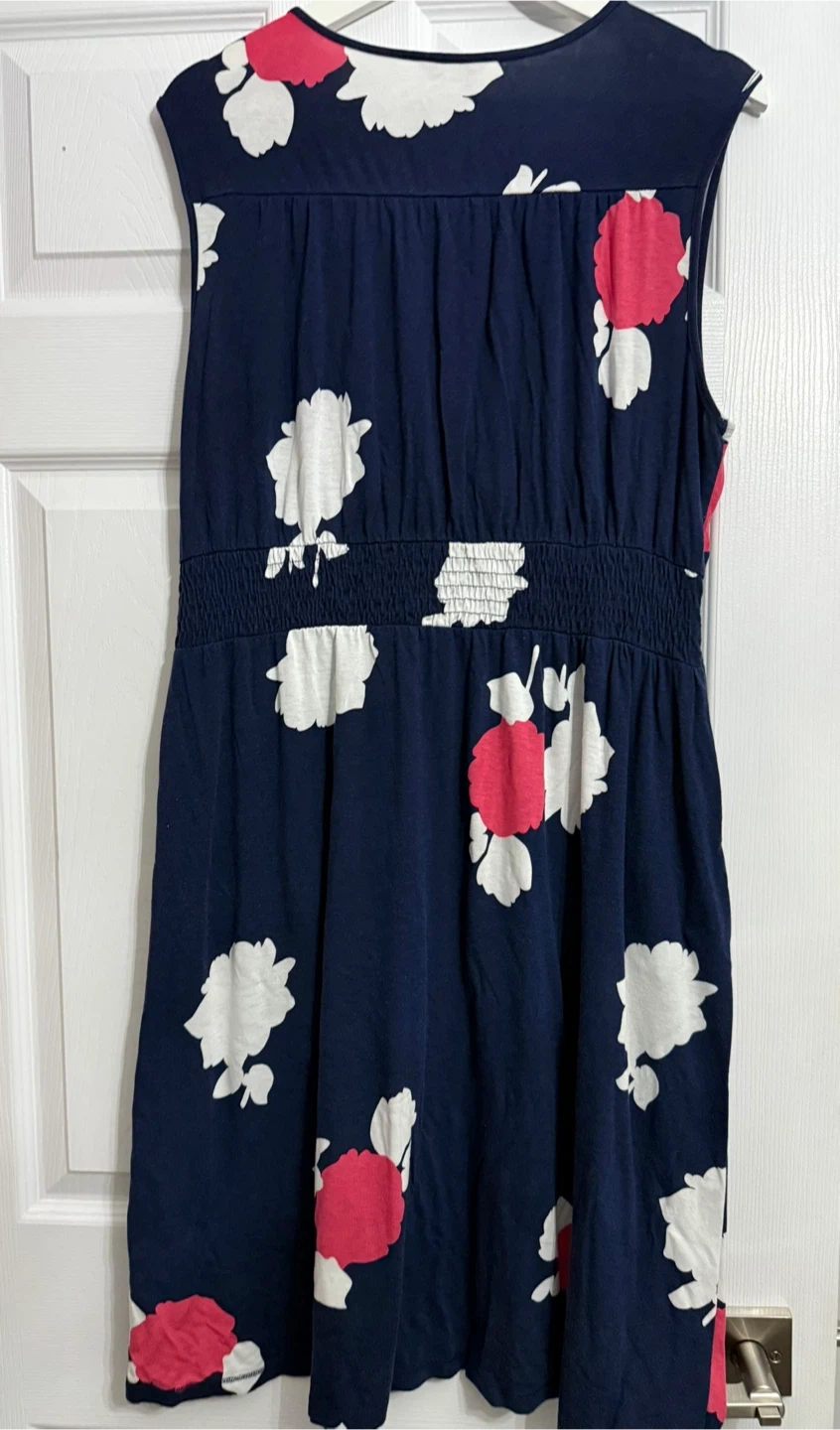 442Denver Hayes floral dress in size XL. It's a sleeveless dress with a navy blue background and a white and pink floral pattern. Perfect for spring or summer! Ptp 23” Length 42”
