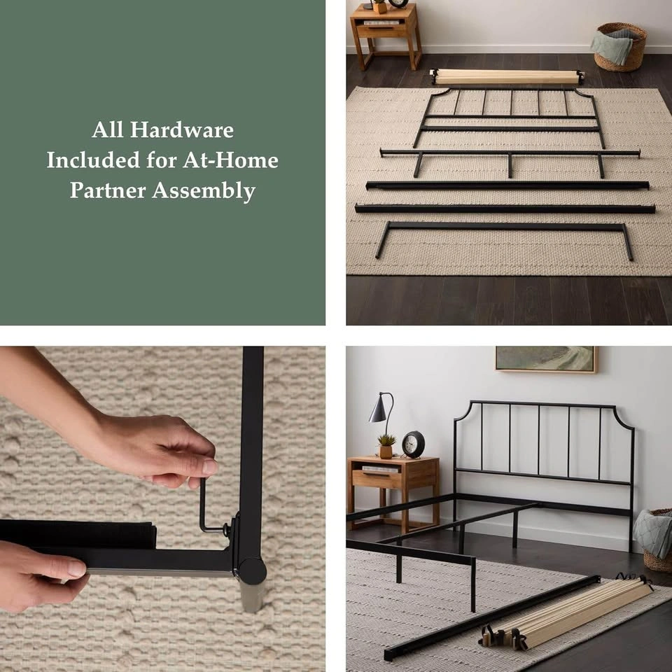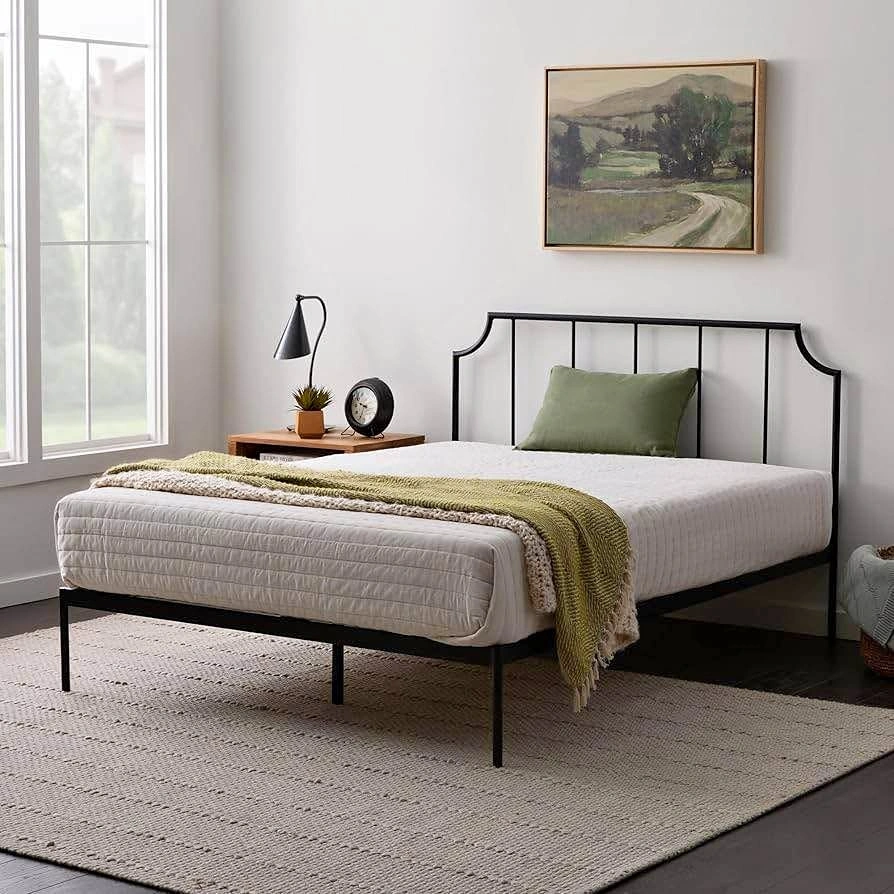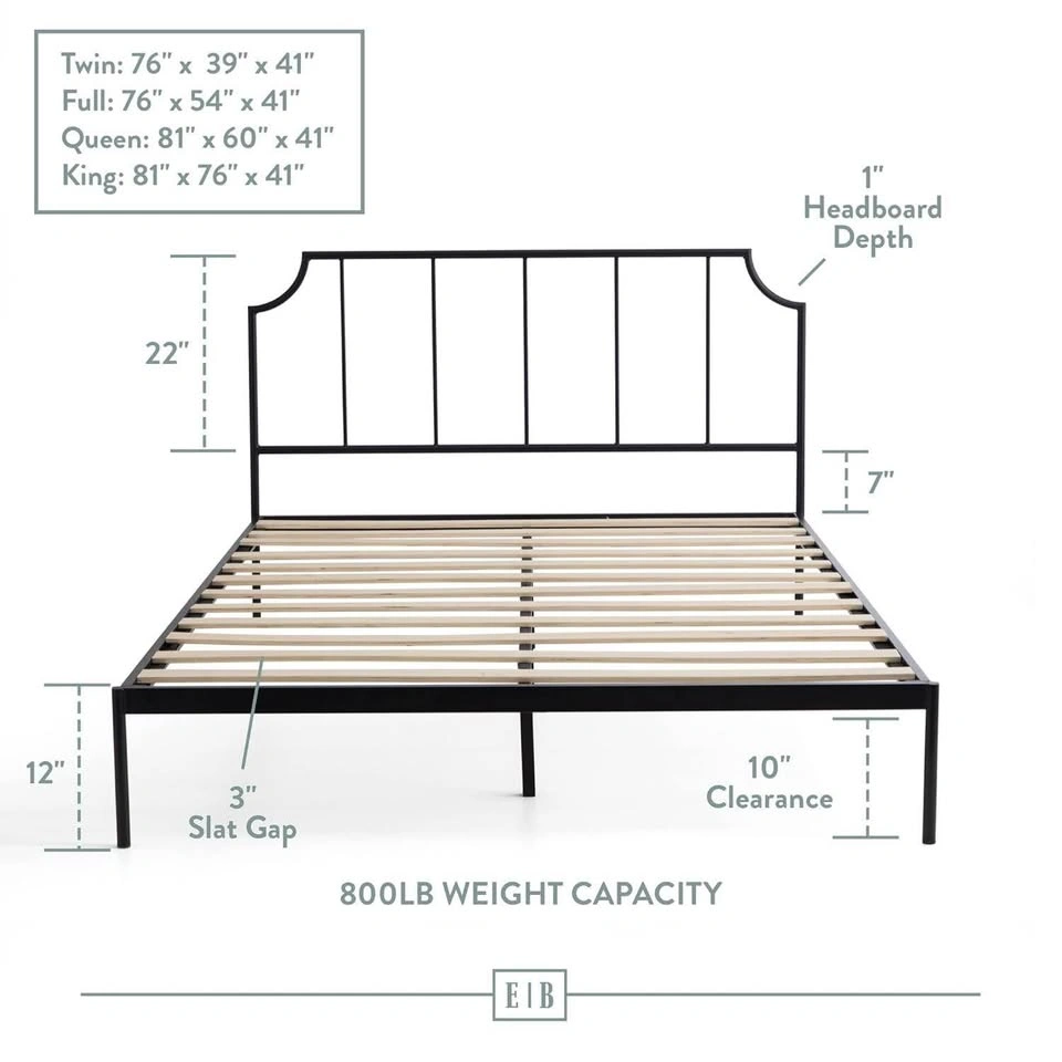 King size metal platform bed with strong slats support. No need of box spring with this bed frame. Easy and quick assembly with this bed frame.