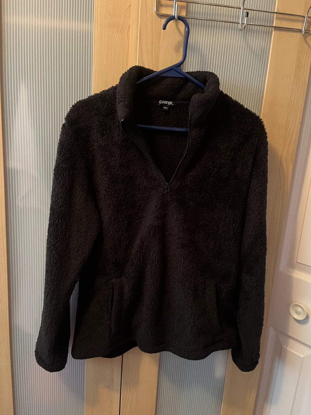 Selling a cozy black fleece pullover from George in size medium. It's super soft and perfect for layering on chilly days! The pullover has a quarter-zip and a comfortable collar. Glendale SW area. (Available if ad is up.)