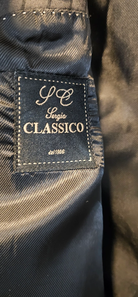 1000+Selling a Sergio Classico blazer in size 48/42. It features a stylish pinstripe pattern and is made from 60% polyester and 40% laine. Perfect for a sharp, professional look!