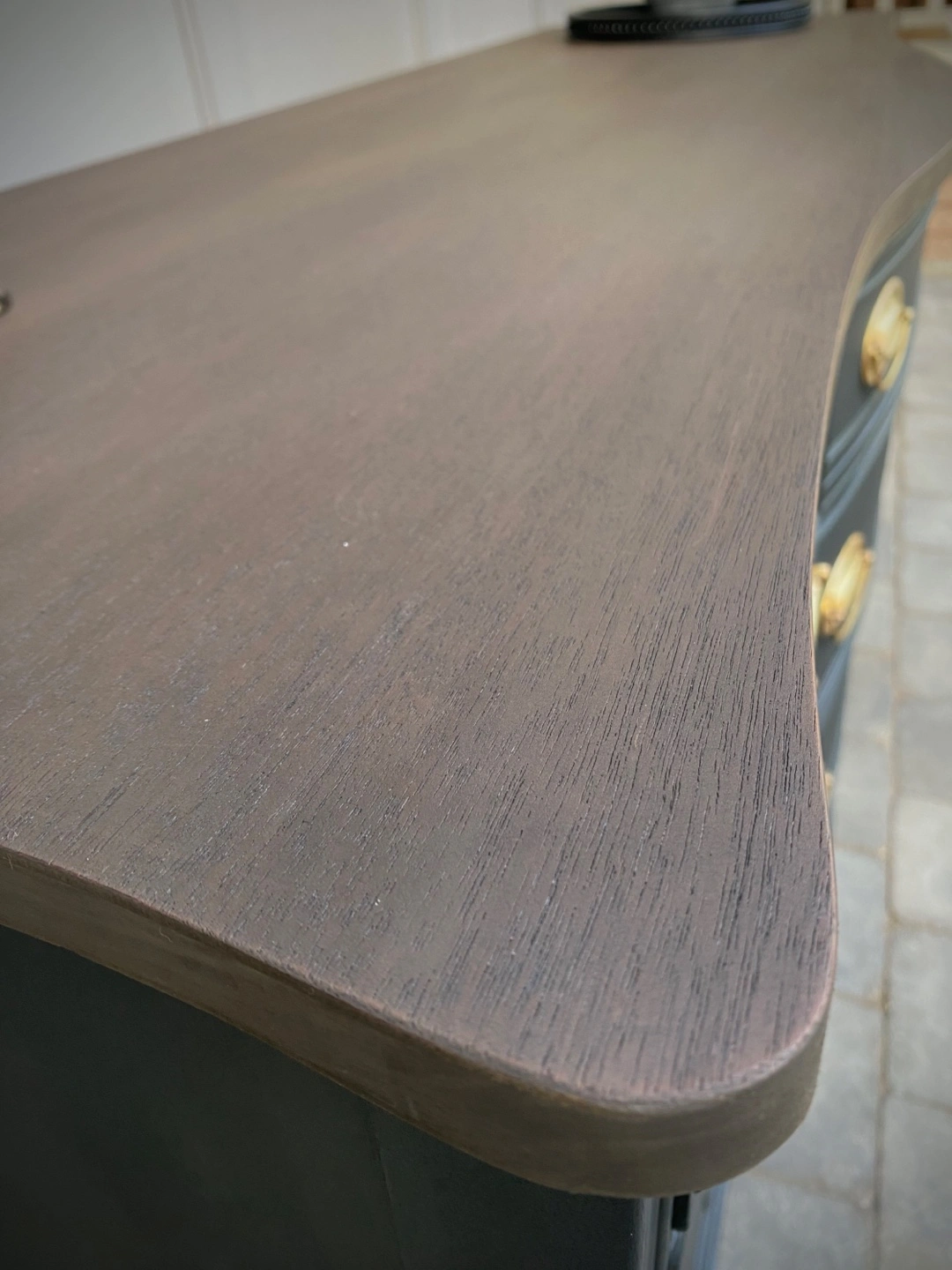 • Top & Base: Sanded to raw mahogany and finished in Fusion Stain & Finishing Oil (SFO) Cappuccino, highlighting the natural beauty of the wood grain.