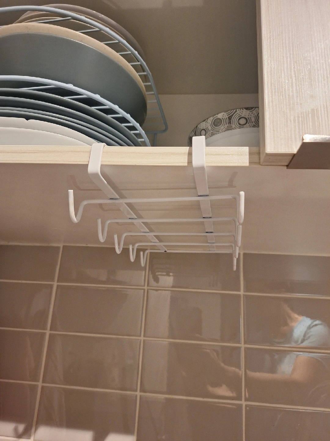 handy mug/ wine glass rack! It easily slides onto shelves to provide convenient storage for your stemware. Perfect for keeping your glasses organized and within reach