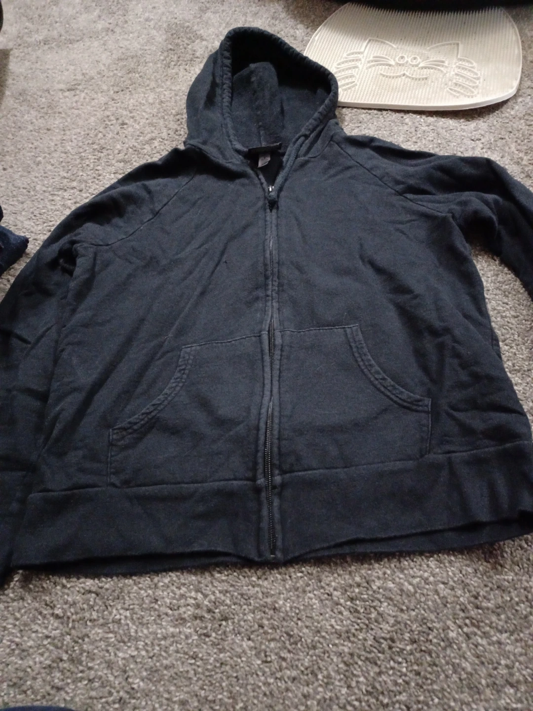 Black zip-up hoodie from Authentic World Wrestling Entertainment. Features a graphic on the back and a full front zipper. Size medium.