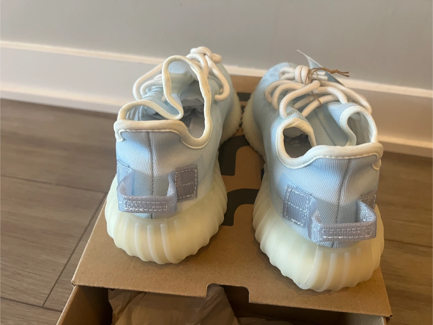 Adidas Yeezy Boost 350 V2 "Mono Ice" sneakers in a light blue colourway. Includes original box.
