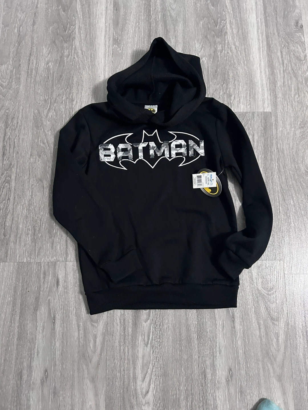 Selling a brand new Batman hoodie, size M (7-8). It's a black hoodie with the Batman logo on the front. Never worn and still has the tags attached!