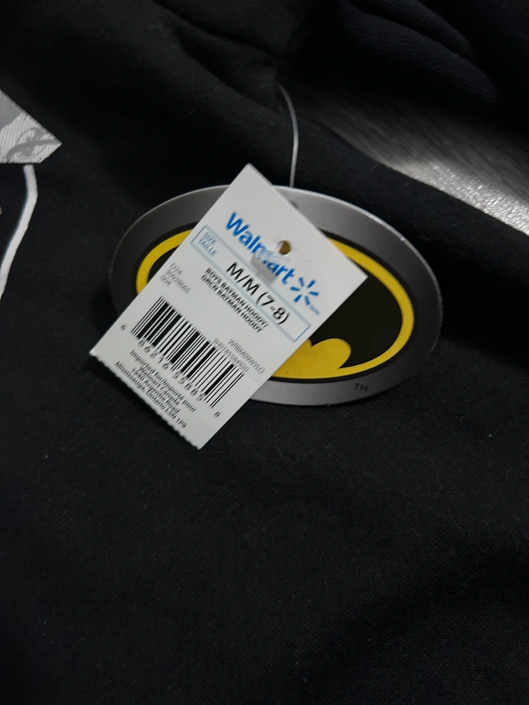 Selling a brand new Batman hoodie, size M (7-8). It's a black hoodie with the Batman logo on the front. Never worn and still has the tags attached!