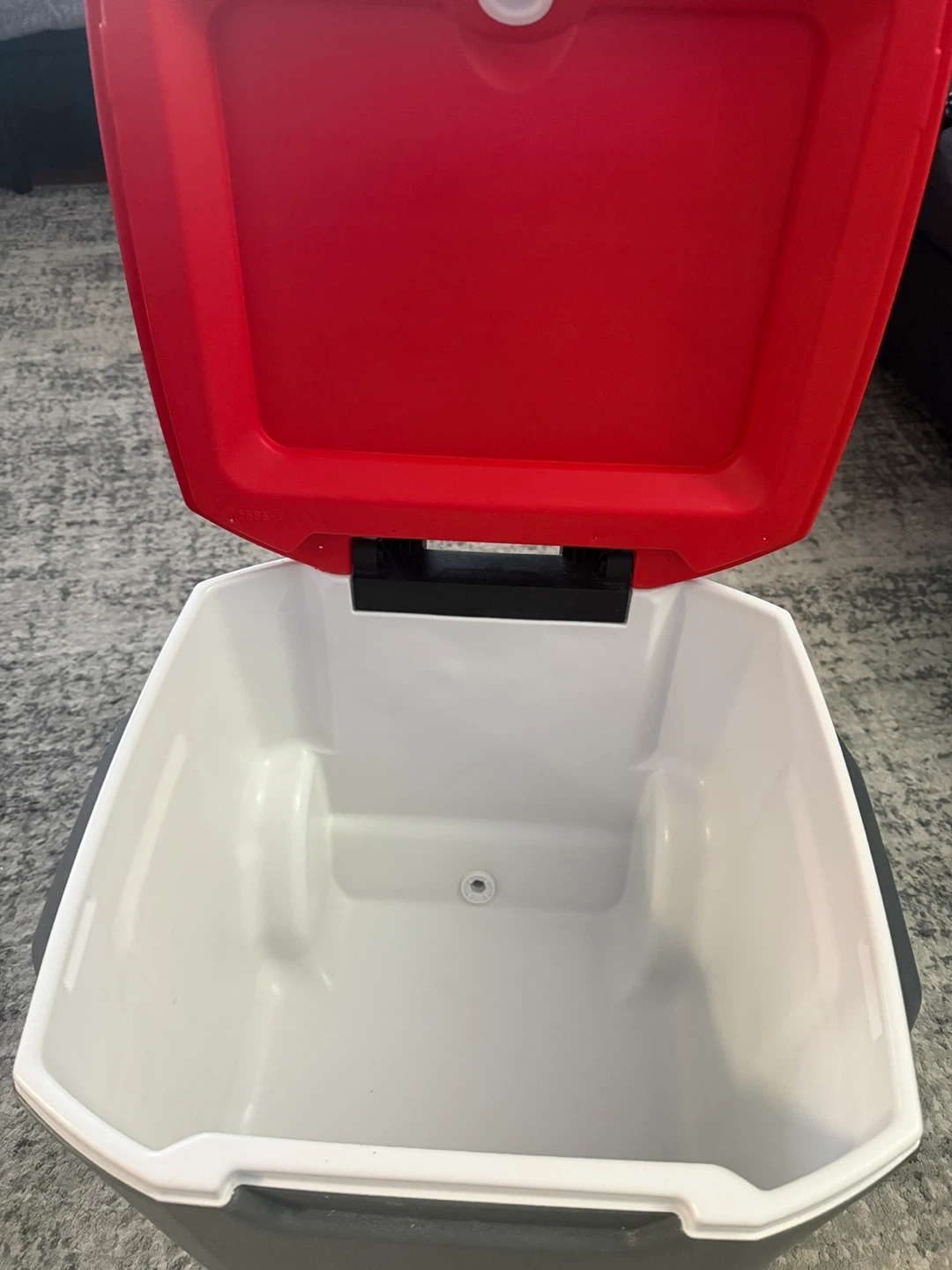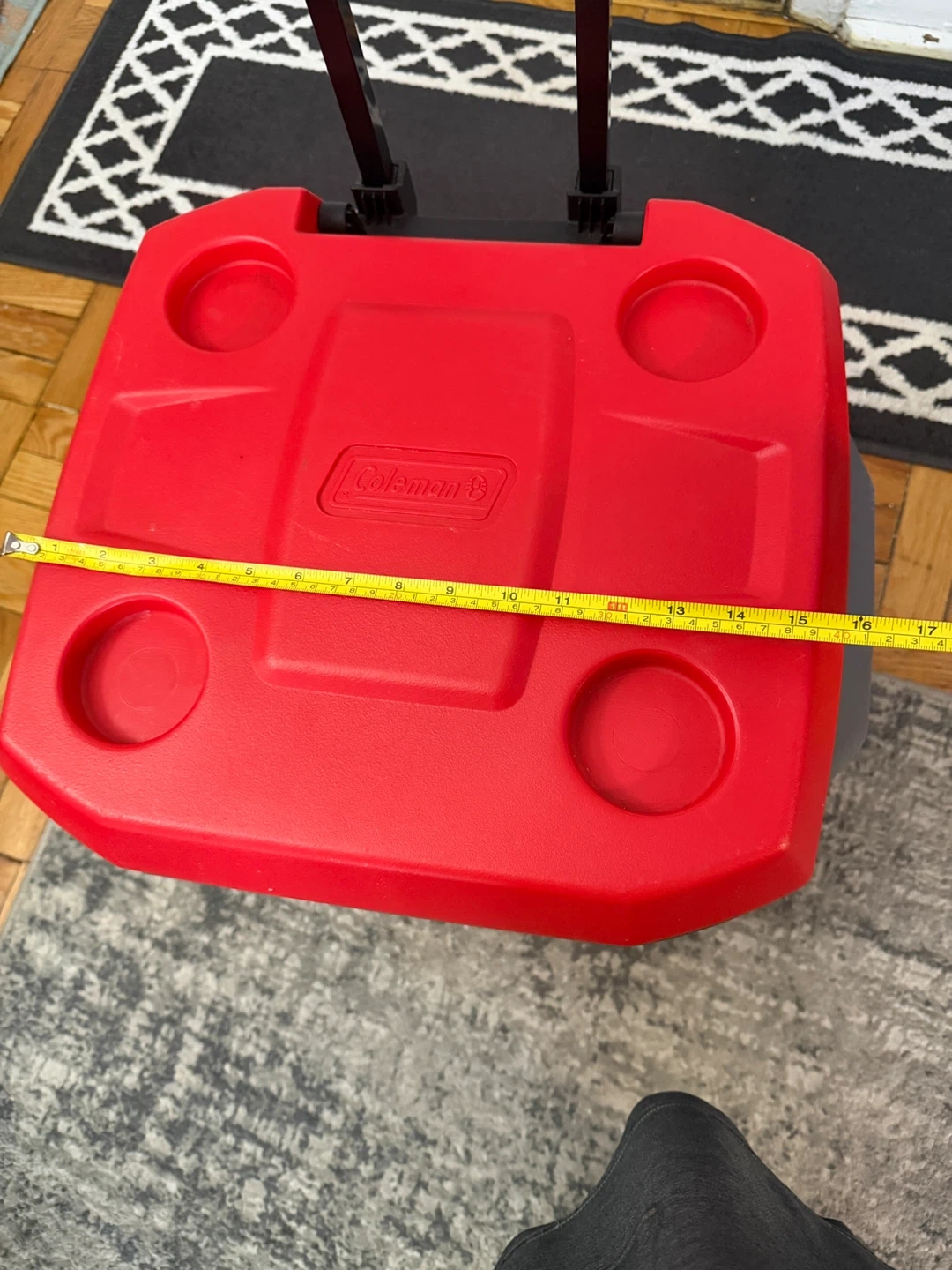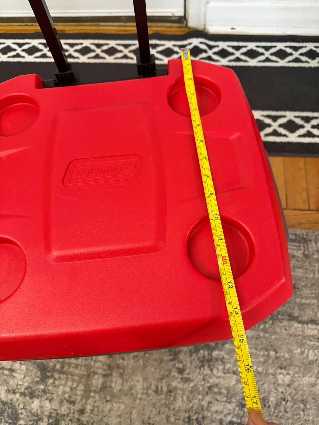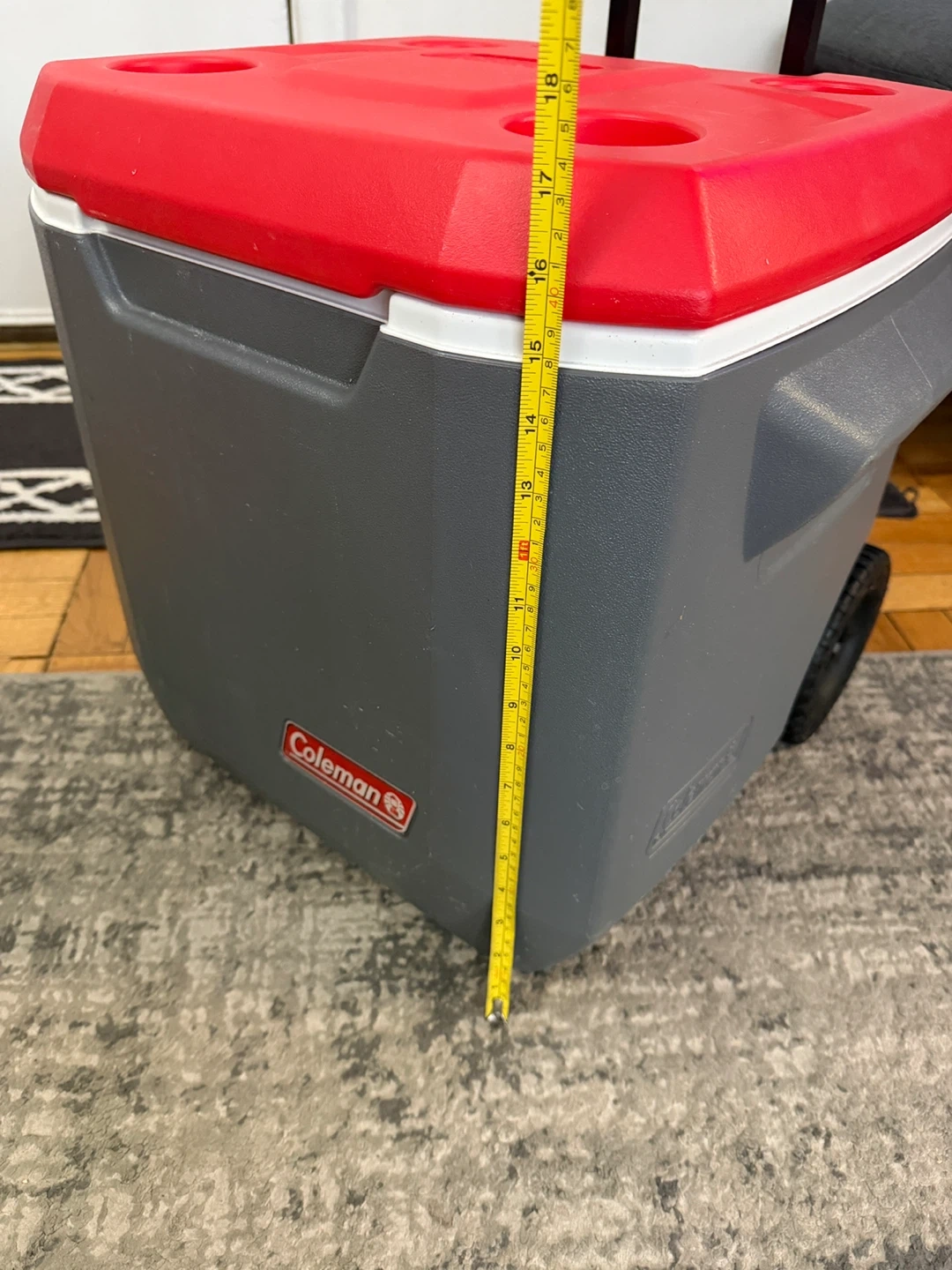 Selling a Coleman rolling cooler! It's grey and red, perfect for keeping your drinks and snacks cold on the go. Great for picnics, camping, or just keeping in the car for road trips