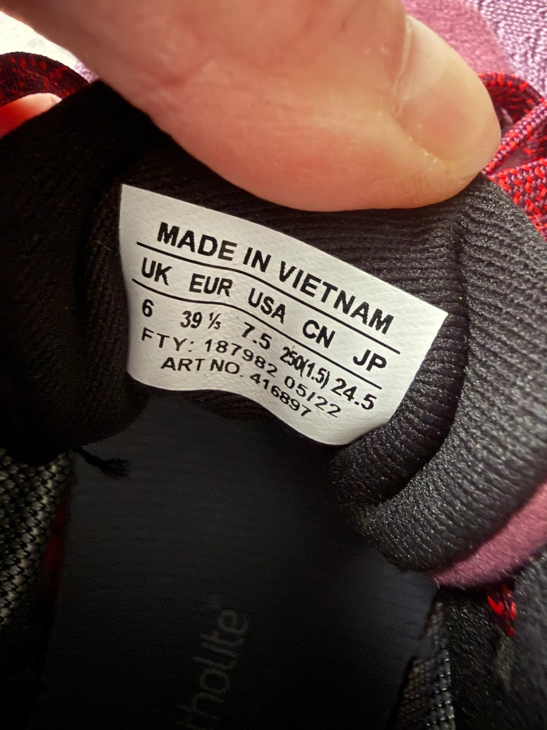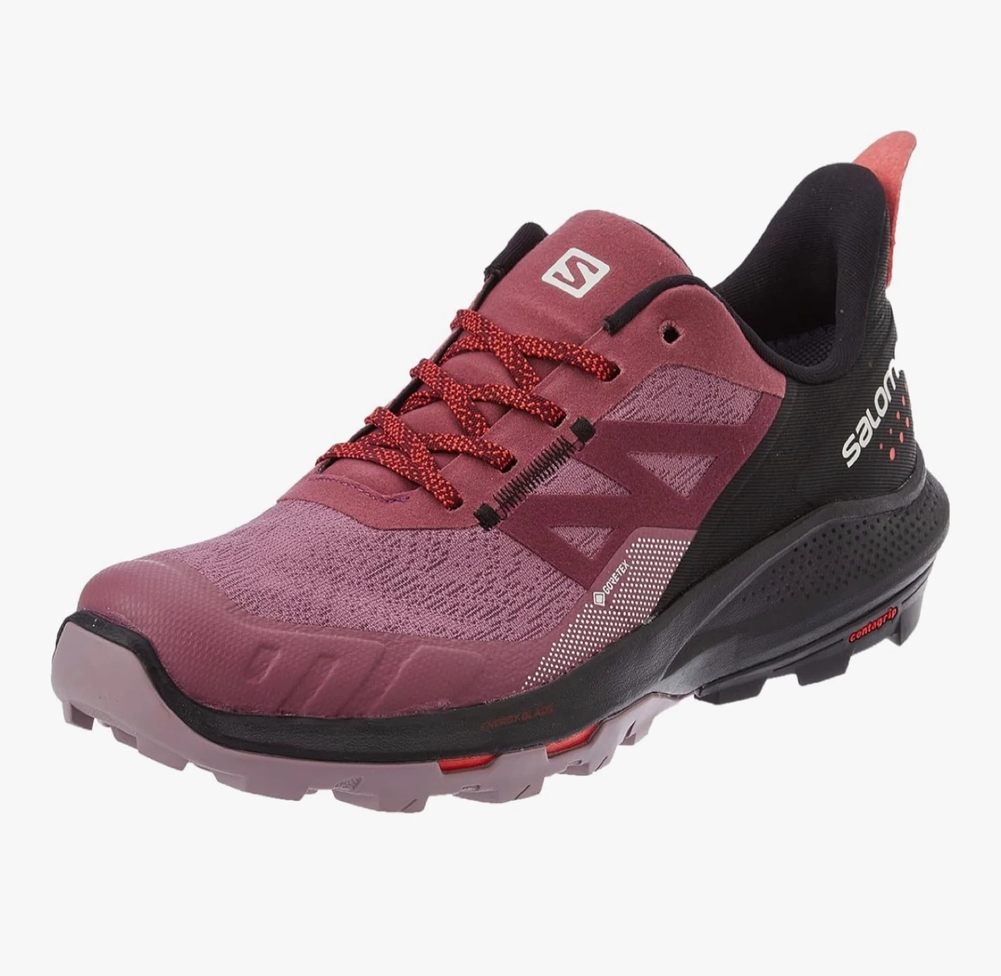 These Salomon trail running shoes feature Gore-Tex for waterproofing. They have a Contagrip sole for traction. The size is a women's 7.5 (EUR 39 1/3, USA 7.5, CN 24.5).