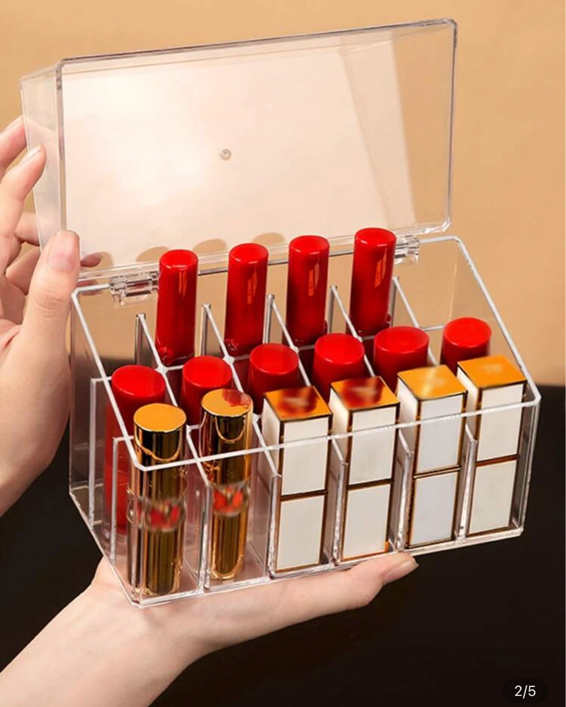 Selling a clear acrylic organizer, perfect for storing lipsticks and other cosmetics. It has multiple compartments to keep everything tidy and easy to find. It's in great condition and ready to help organize your makeup collection!