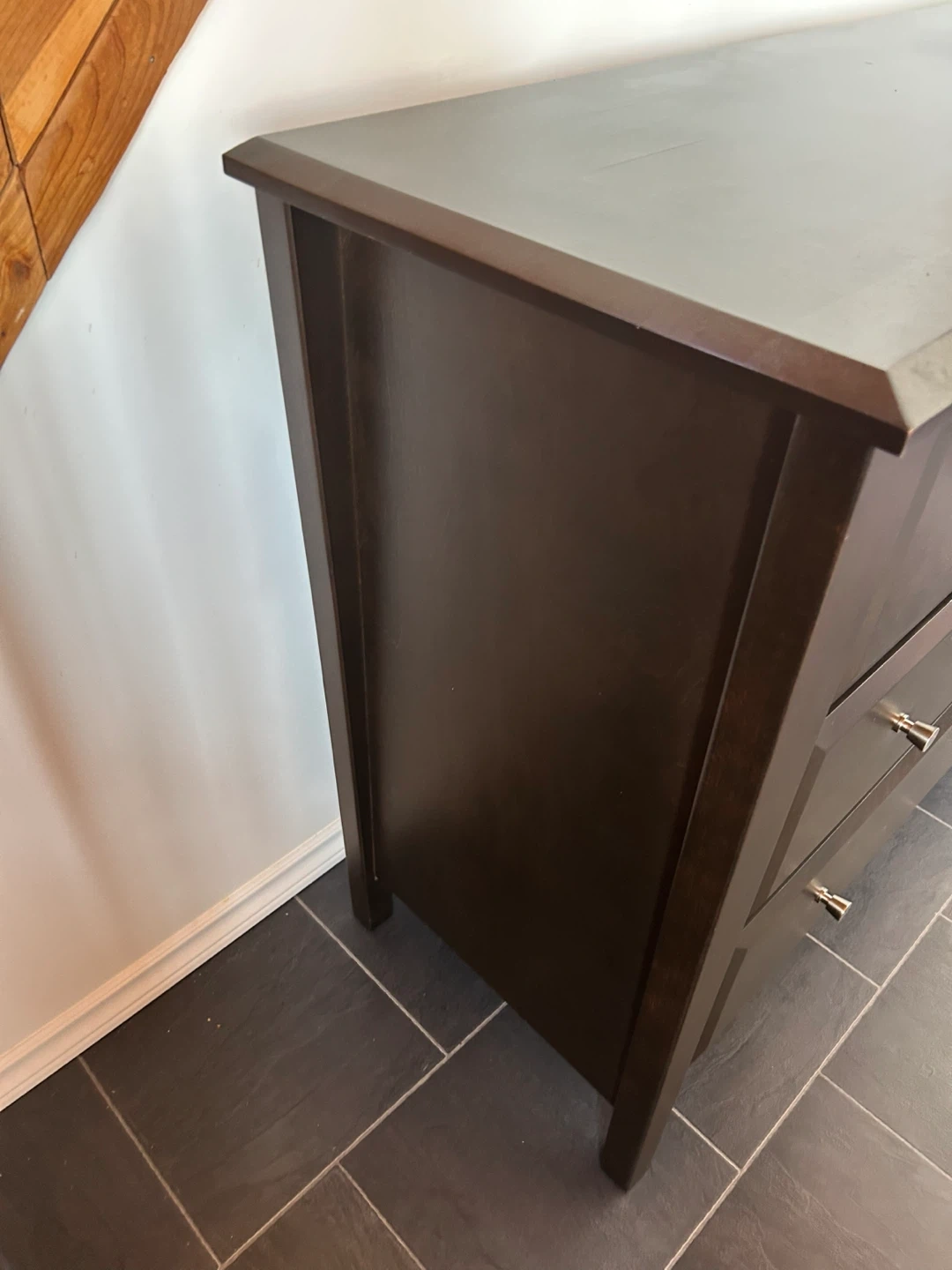 Dark Brown 3 Drawer Dresser with a Cabinet
