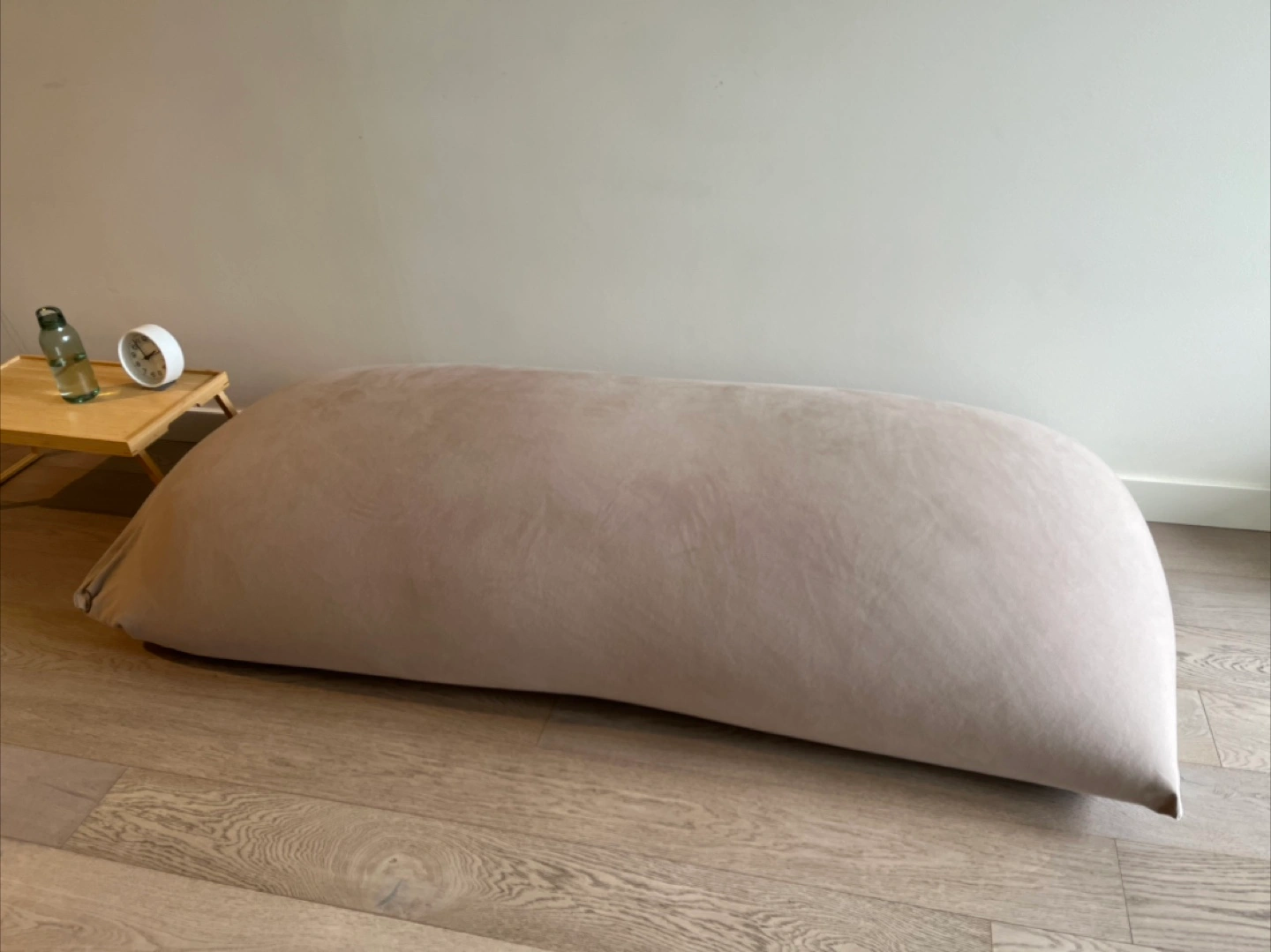 A comfortable beige beanbag chair. It can be used as a lounger or a chair. A great place to relax and unwind at the end of a long day.